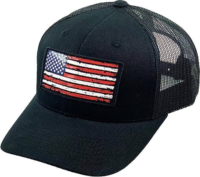 Trucker-Hut mit fünf Paneelen: Bemalte amerikanische Flagge (Schwarz/Weiß) im Großhandel