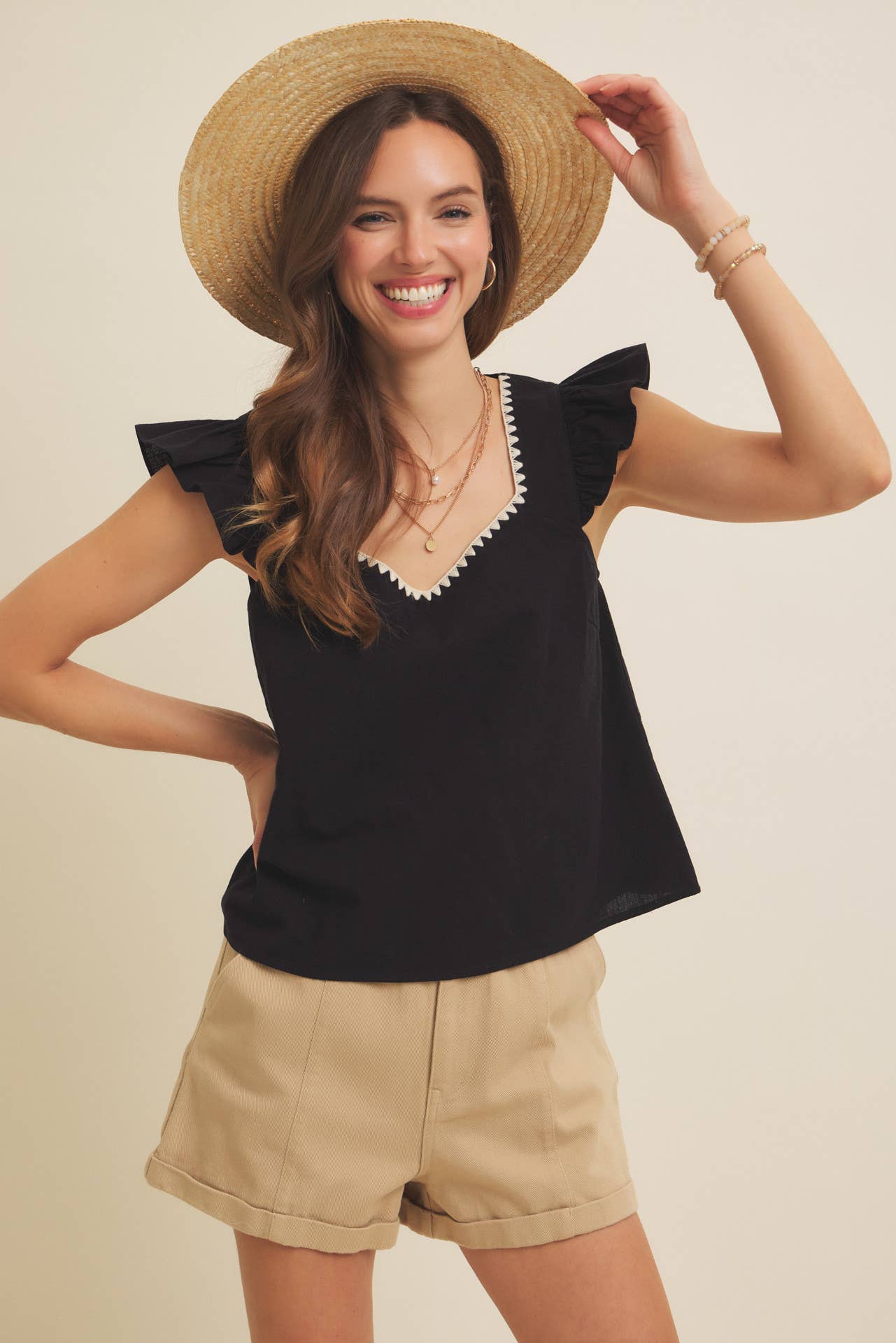 SLUB-BABYDOLL-TOP MIT VORDERSCHLEIFE UND GESMOKTEM RÜCKEN