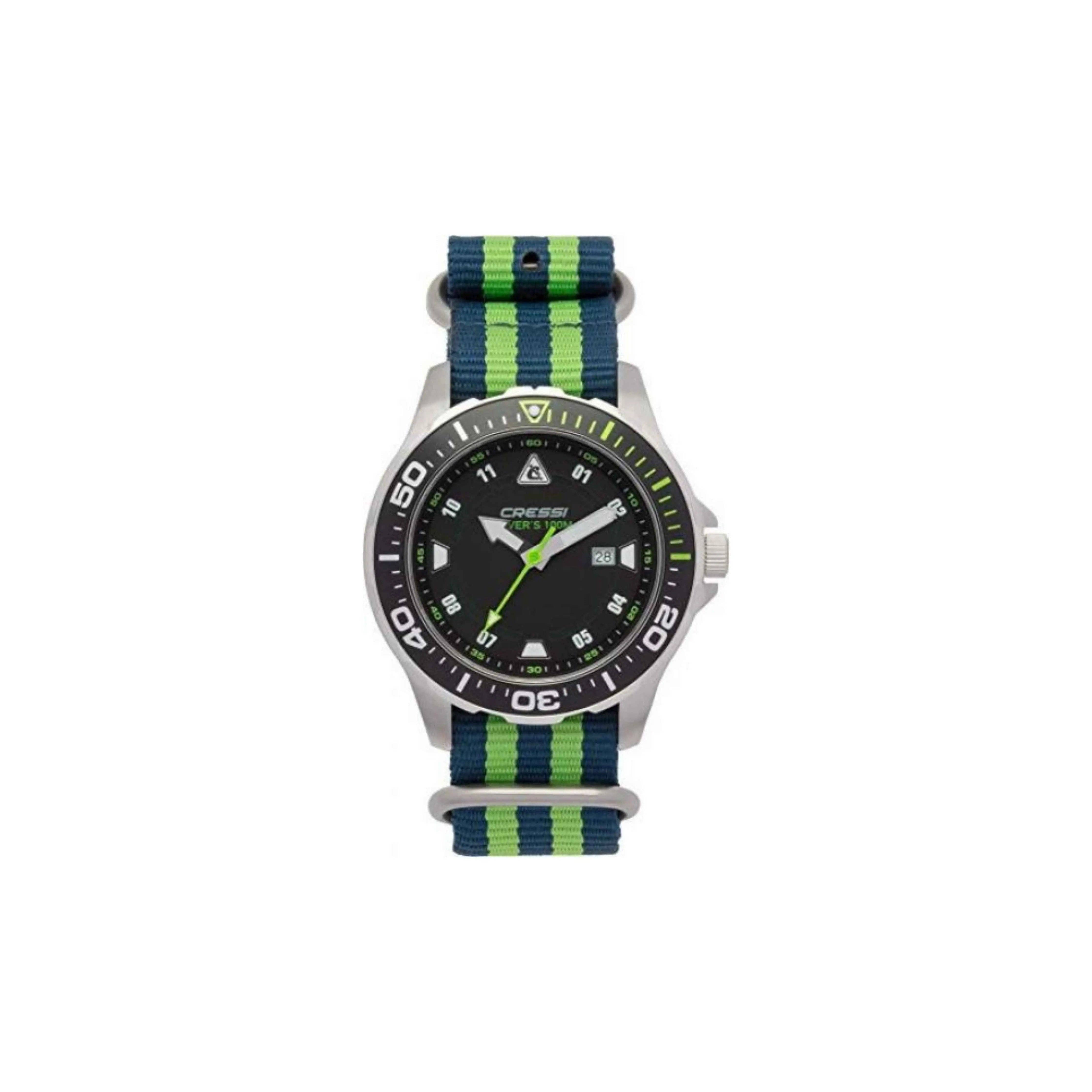 Die ideale Uhr für Reisen Divers Watch ist eine Taucheruhr für Reisende, die bis zu 200 m/20 ATM beständig ist und ein echter Erfolg ist und in verschiedenen leuchtenden Farben angeboten wird. Nützlich für Reisende, da es zwei Zeitzonen bietet. Es verfügt über eine Lupe am Kalender, ein robustes Stahlgehäuse, ein schwarzes Zifferblatt mit fluoreszierenden Punkten, Mineralglas und ein bequemes Armband aus weichem Gummi. TECHNISCHE MERKMALE: Wasserdichtigkeit 200 m/660 ft/20 atm. Reichliches Ziffernblatt mit drehbarer Lünette. Zweifacher Riemen aus weichem Gummibandmaterial Fluoreszierende Punkte Taucheruhr-Funktion Die Cressi Traveller Dual Time Uhr ist die beste Wahl, um mit der Zeit zu Hause in Kontakt zu bleiben.