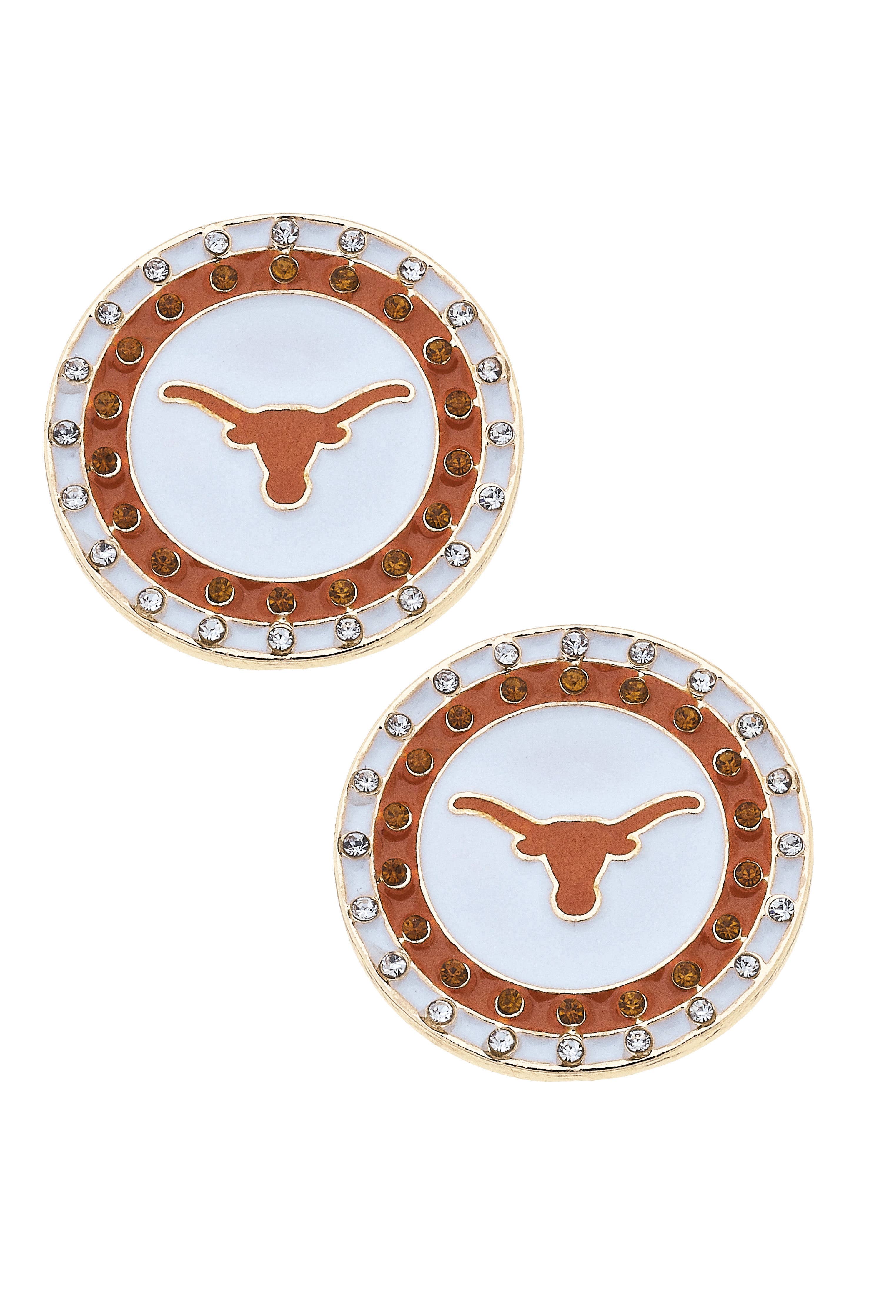 Diese Texas Longhorns Bevo-Ohrringe aus Harz in Burnt Orange/Weiß sind eine verspielte Möglichkeit, Ihr Team zu repräsentieren. Mit Bevo, dem Maskottchen der Longhorns, aus Harz mit Details in Burnt Orange und Weiß, sind diese Ohrringe eine lustige Ergänzung für die Schmuckkollektion jedes Fans. DETAILS Basismetall mit glänzender Goldbeschichtung 5 cm L x 3,8 cm B Offiziell lizenziert von der NCAA