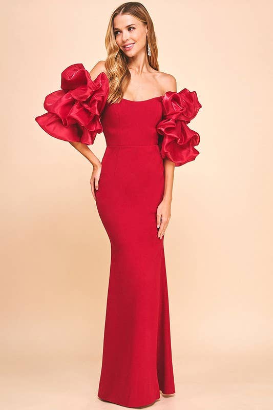 SCHULTERFREIES MAXIKLEID MIT SCHLEIFENDETAIL