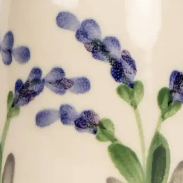 Verwendet für das Muttertagsfenster zusammen mit Lavendelbündeln (Château de la Gabelle). War sehr effektiv – mehrere Keramikstücke und zusätzliche Lavendelbündel verkauft. Das Lavendelmuster ist einfach und schön und wir werden es das ganze Jahr über vorrätig halten.