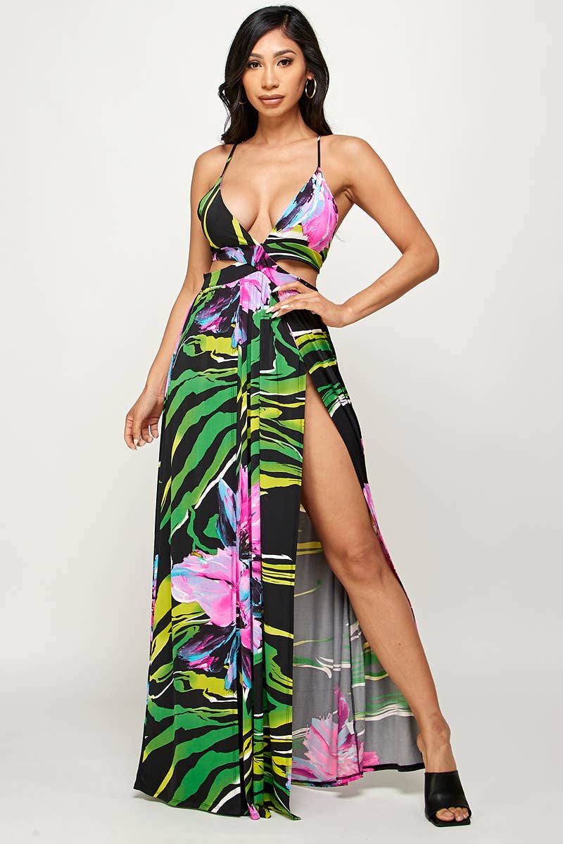 💞 Maxi-Kleid mit mehrfarbigem Druck 💗