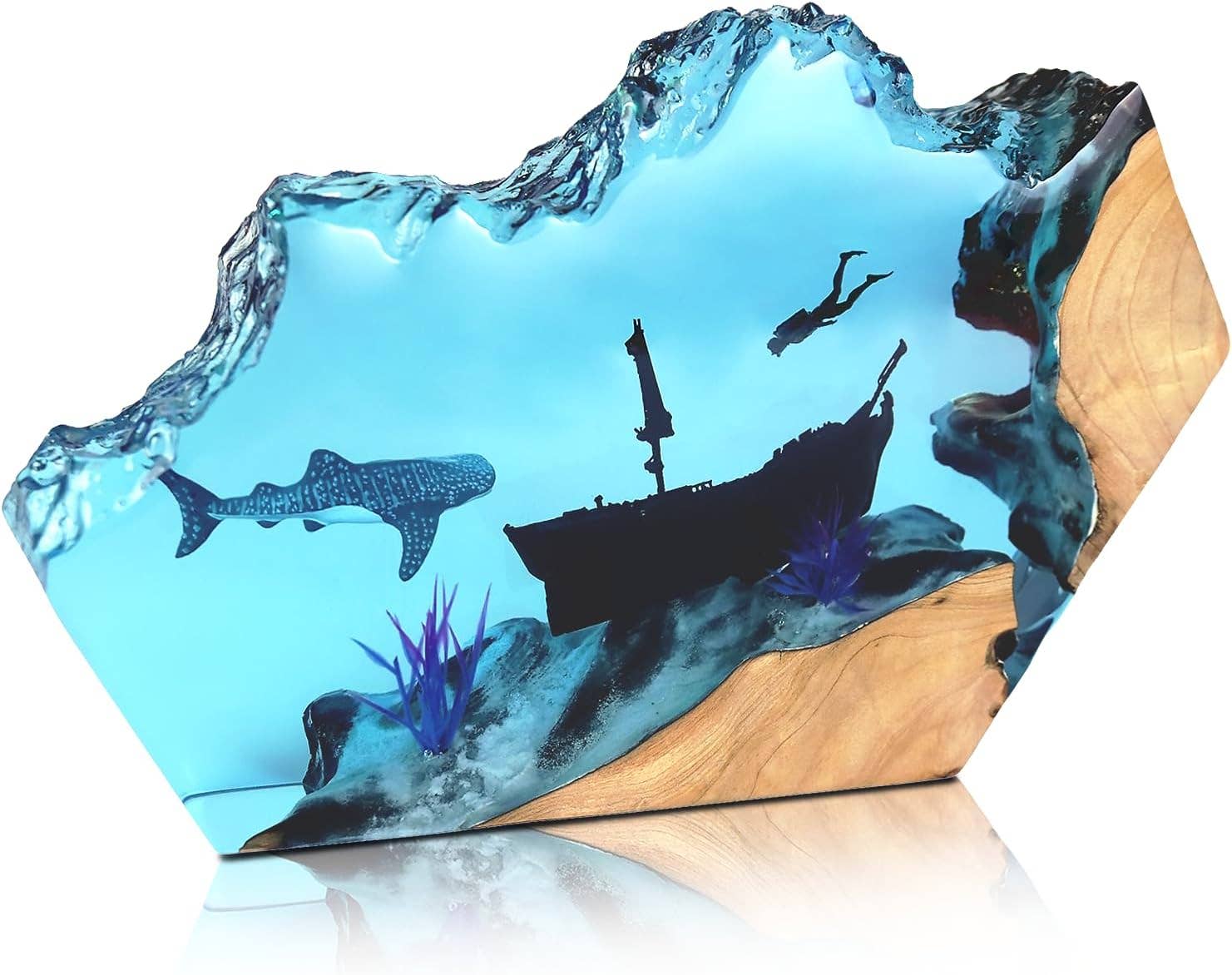 Versunkene Bootharz-Hai-Wal-Lampe Ozean-Nachtlicht-Dekor