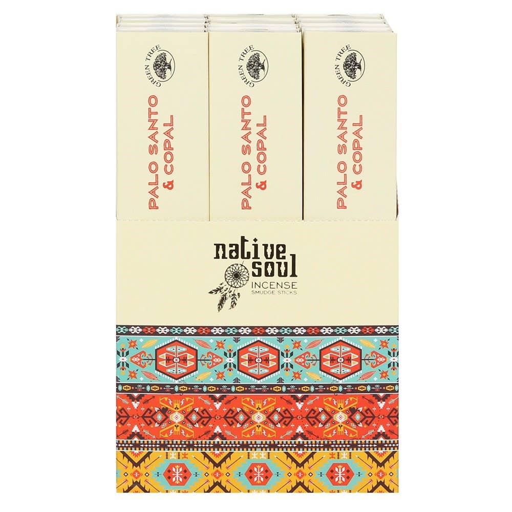 Diese Räucherstäbchen von Native Soul Palo Santo & Florida Water wurden perfekt miteinander vermischt, um eine beruhigende Atmosphäre zu schaffen und gleichzeitig das Gleichgewicht von Geist und Seele wiederherzustellen. Wunderschön verpackt in einer Schiebebox, die außen mit indianischem Druck verziert und innen mit einer zarten Feder verziert ist. Jede äußere Schachtel enthält 12 einzelne Schachteln mit Räucherstäbchen.