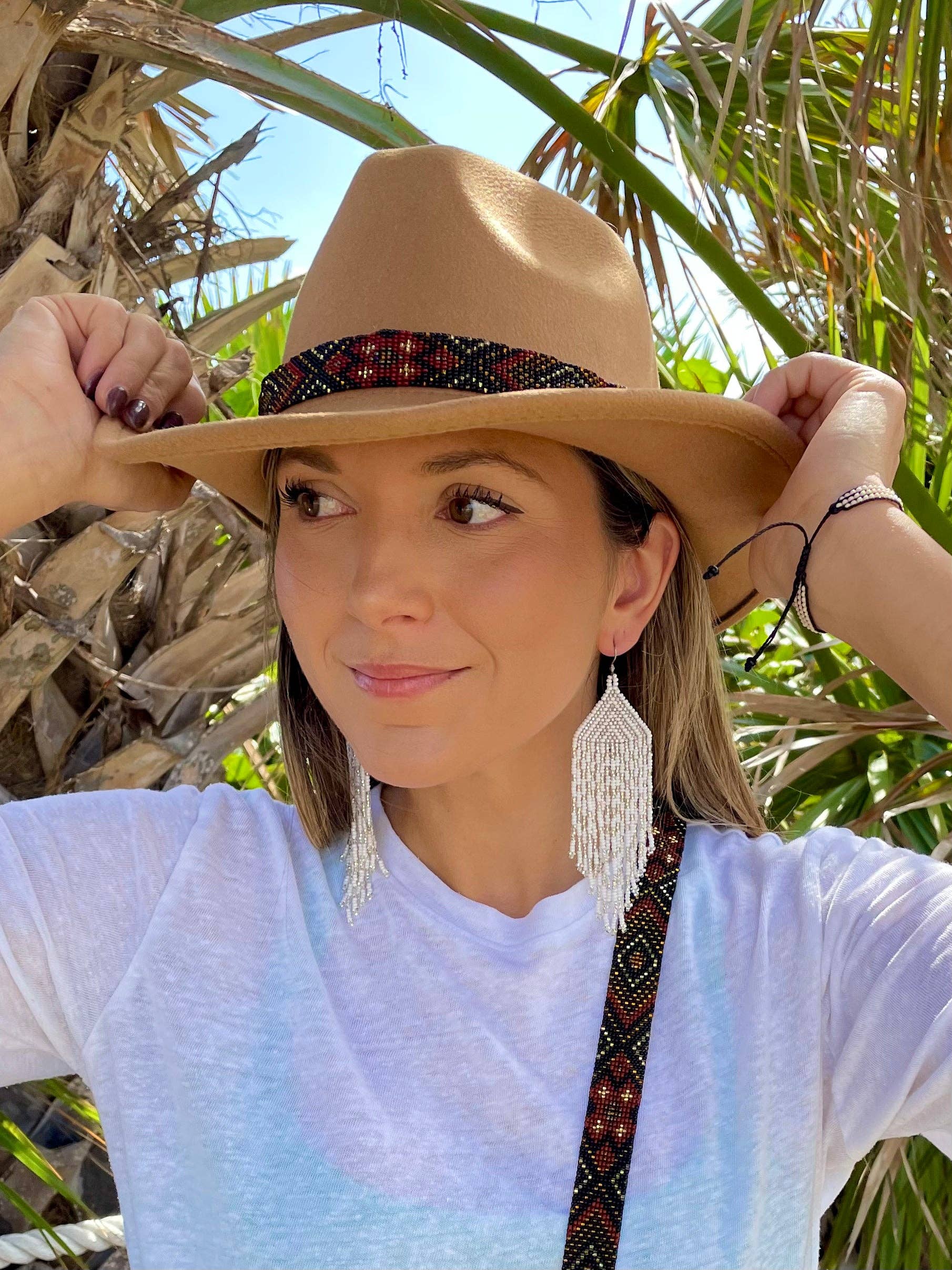 Verschönern Sie Ihren Lieblingshut mit perlenbesetzten Stammesmustern in einer Vielzahl köstlicher Farben! Alle Hutbänder sind mit verstellbaren Lederbändern ausgestattet, sodass sie sich perfekt an Hüte aller Größen anschmiegen! Handgefertigt in Guatemala *Der abgebildete Hut ist nicht im Lieferumfang enthalten *Bitte beachten Sie, dass alle unsere Artikel handgefertigt sind und für jedes Stück ein Unikat sind. Außerdem können die Farben je nach Gerät leicht variieren. Gefällt dir, was du hier siehst? Schauen Sie sich all unsere schönen handgefertigten Produkte an und folgen Sie uns auf Facebook oder Instagram! @KAQCHIshop