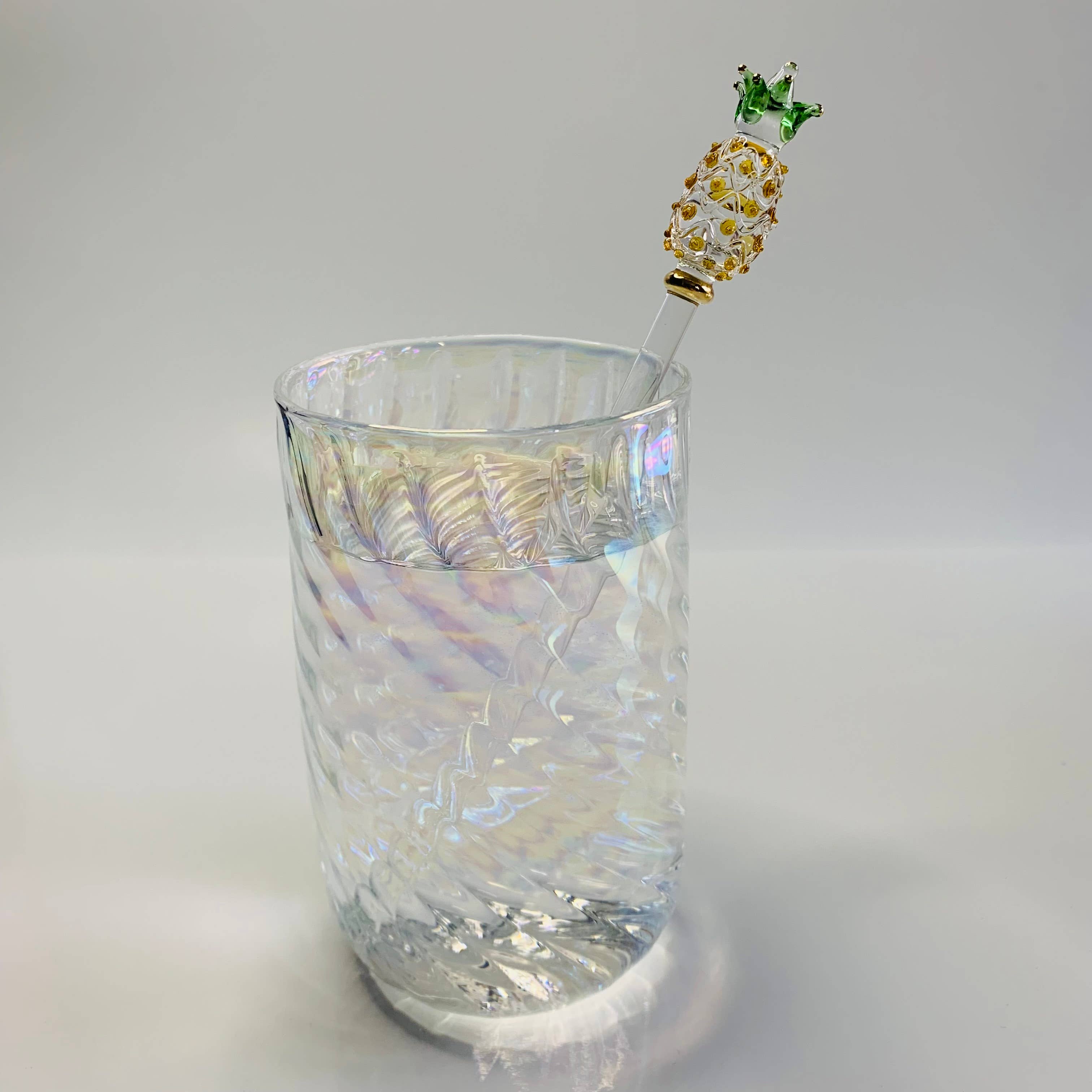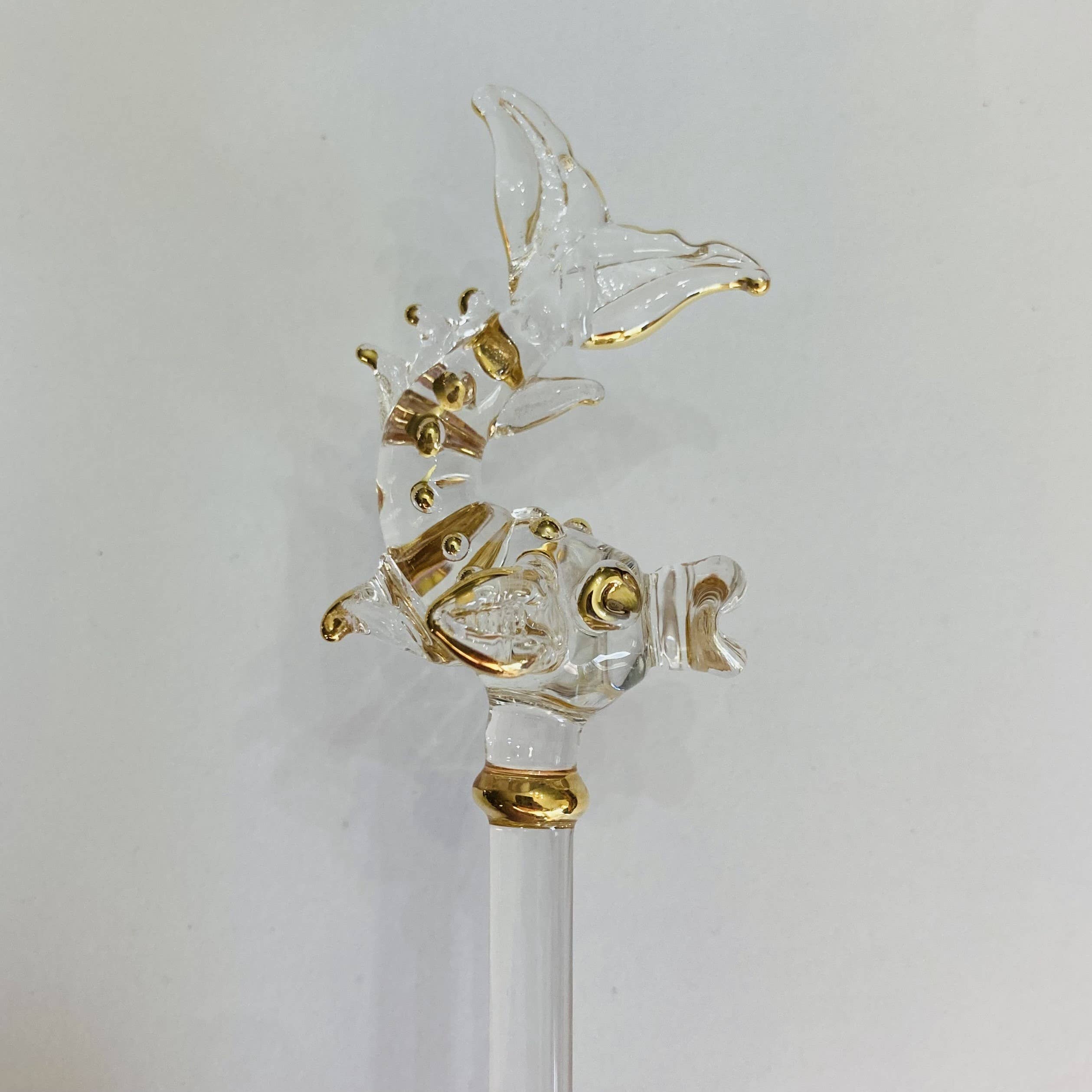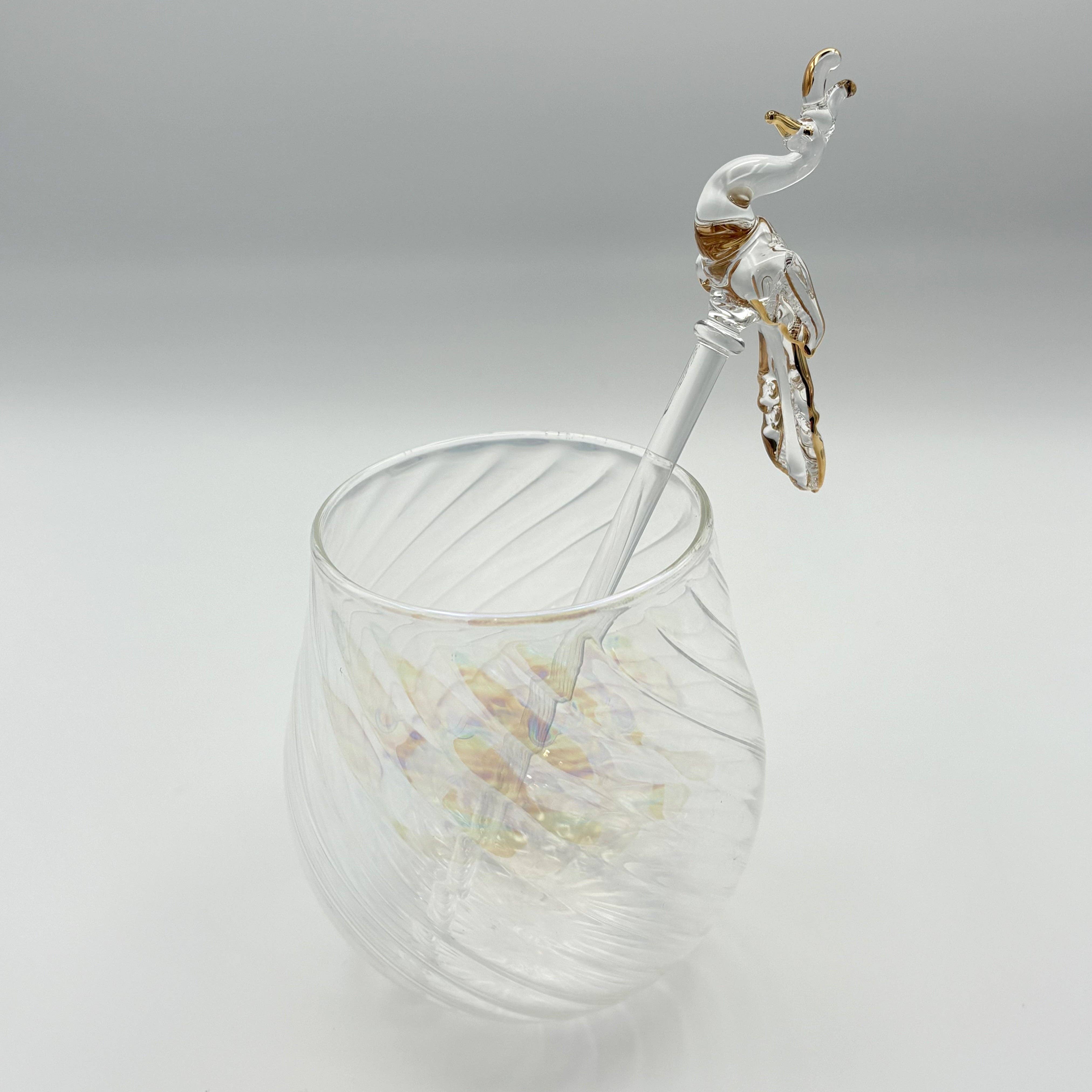 Handgefertigter Cocktail-Rührstab aus Glas mit goldbemalter Palme im Großhandel