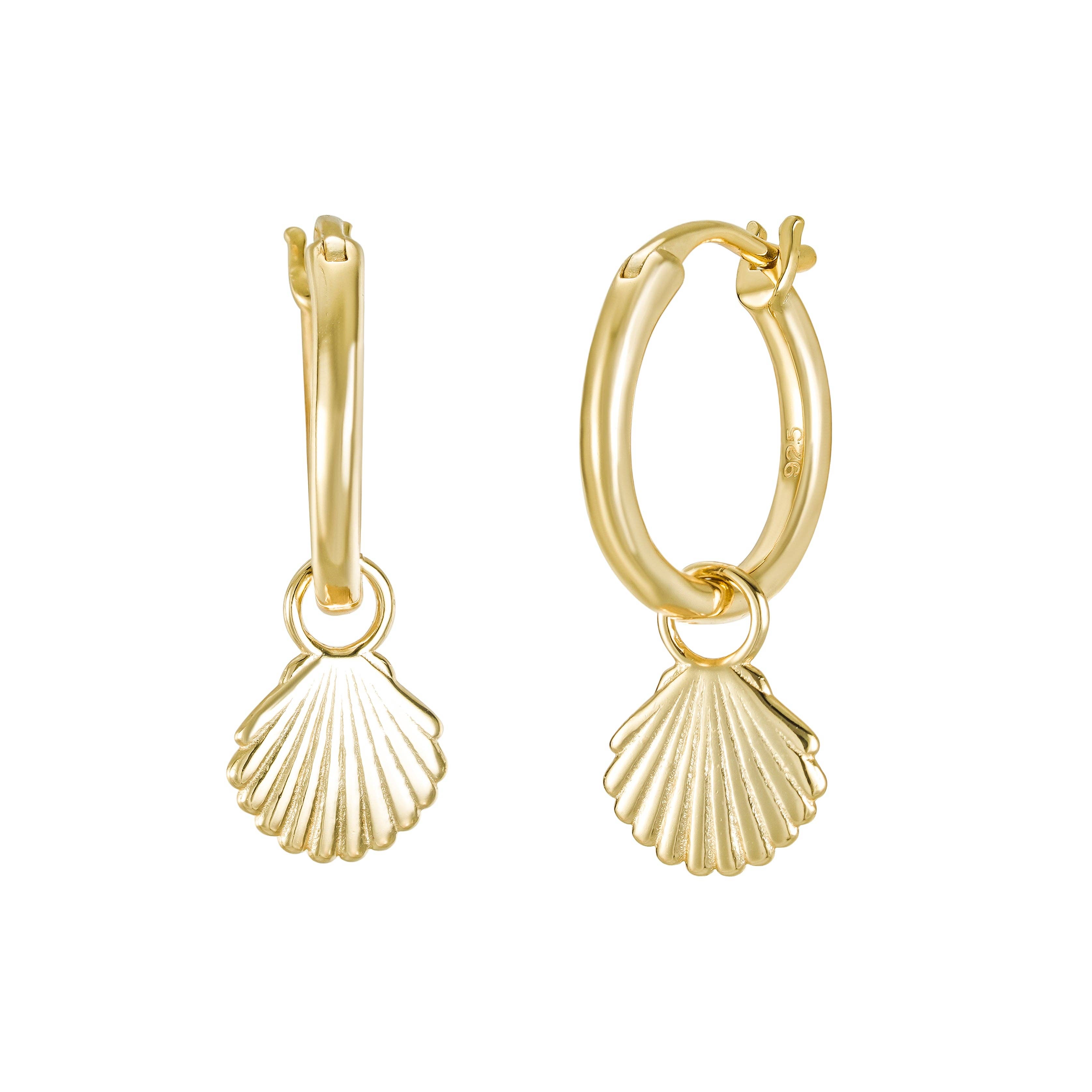 Setzen Sie diese herrlich geschnitzten Muschel-Ohrringe ins Sonnenlicht, um die Perlen leuchten zu sehen. Tragen Sie sie, um Ihren eigenen Glanz zu betonen. * Perlmuttstein * 14K vergoldet * 100% Sterlingsilber-Basis * Nickelfrei * Hypoallergen * Anlaufbeständig * 11mm Creole (Innendurchmesser) * Klappverschluss *Hinweis: Jeder Stein kann leicht variieren.