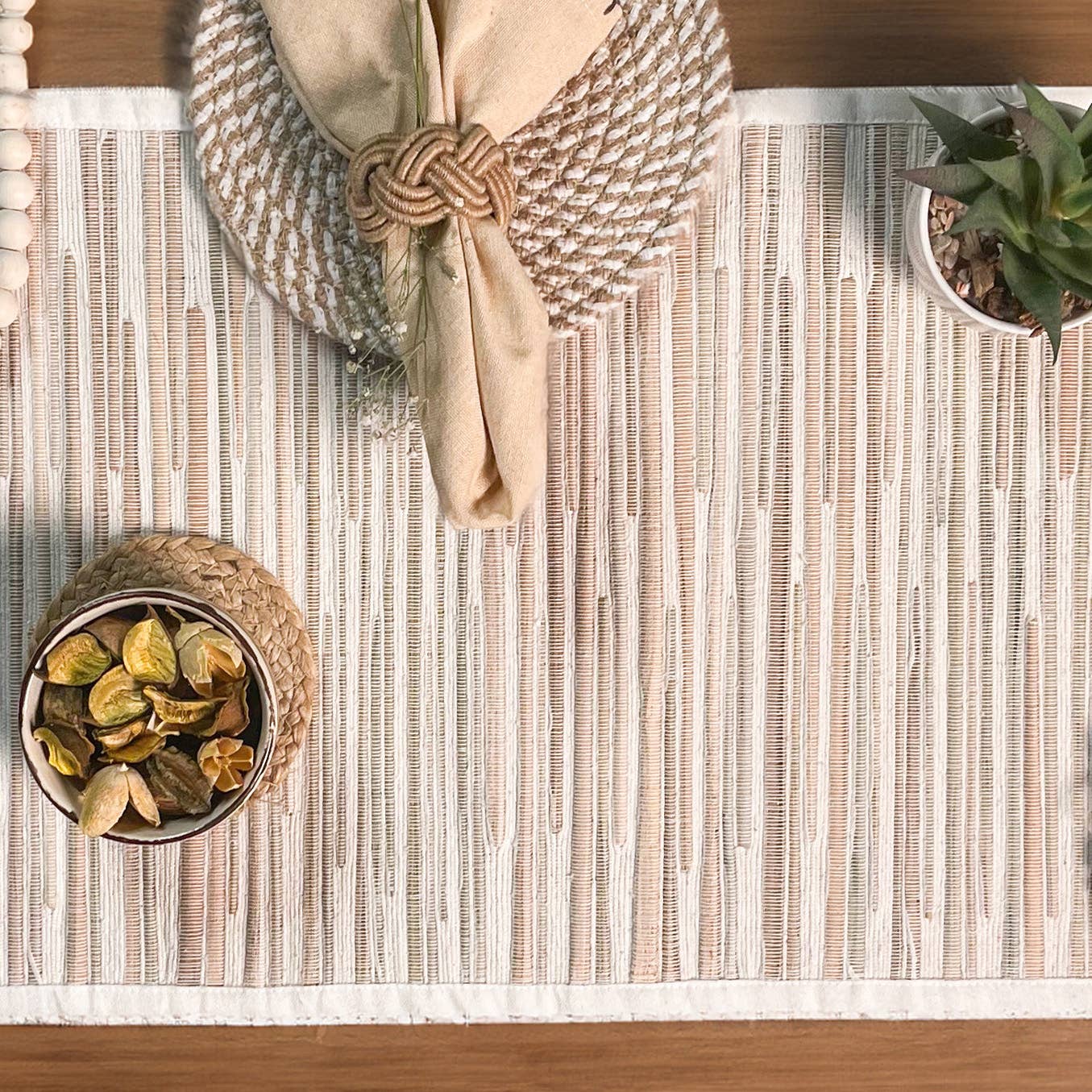 Die Tischaccessoires von Chardin Home werden von unseren Webern handgefertigt, um langlebig und langlebig zu sein. Unsere Weberinnen sorgen dafür, dass diese strapazierfähigen Produkte auch hervorragend der Hitze von heißen Platten und Utensilien widerstehen und Ihren Tisch vor Spritzern, Hitze und Schmutz schützen