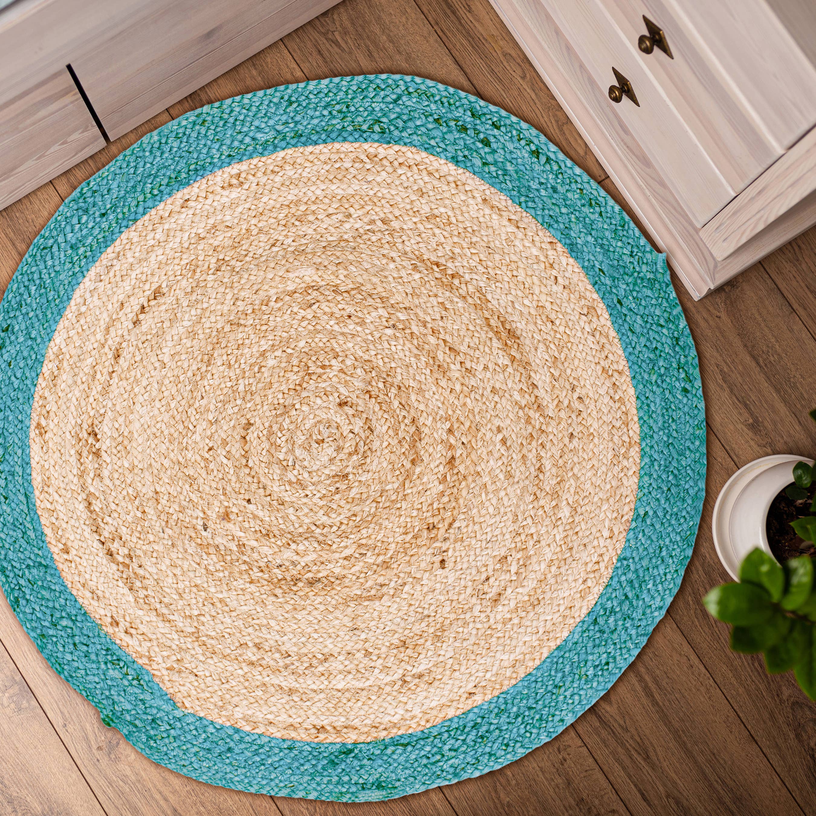 Set aus 4 handgeflochtenen Tischsets aus Jute und Baumwolle, 33 cm, Weiß im Großhandel