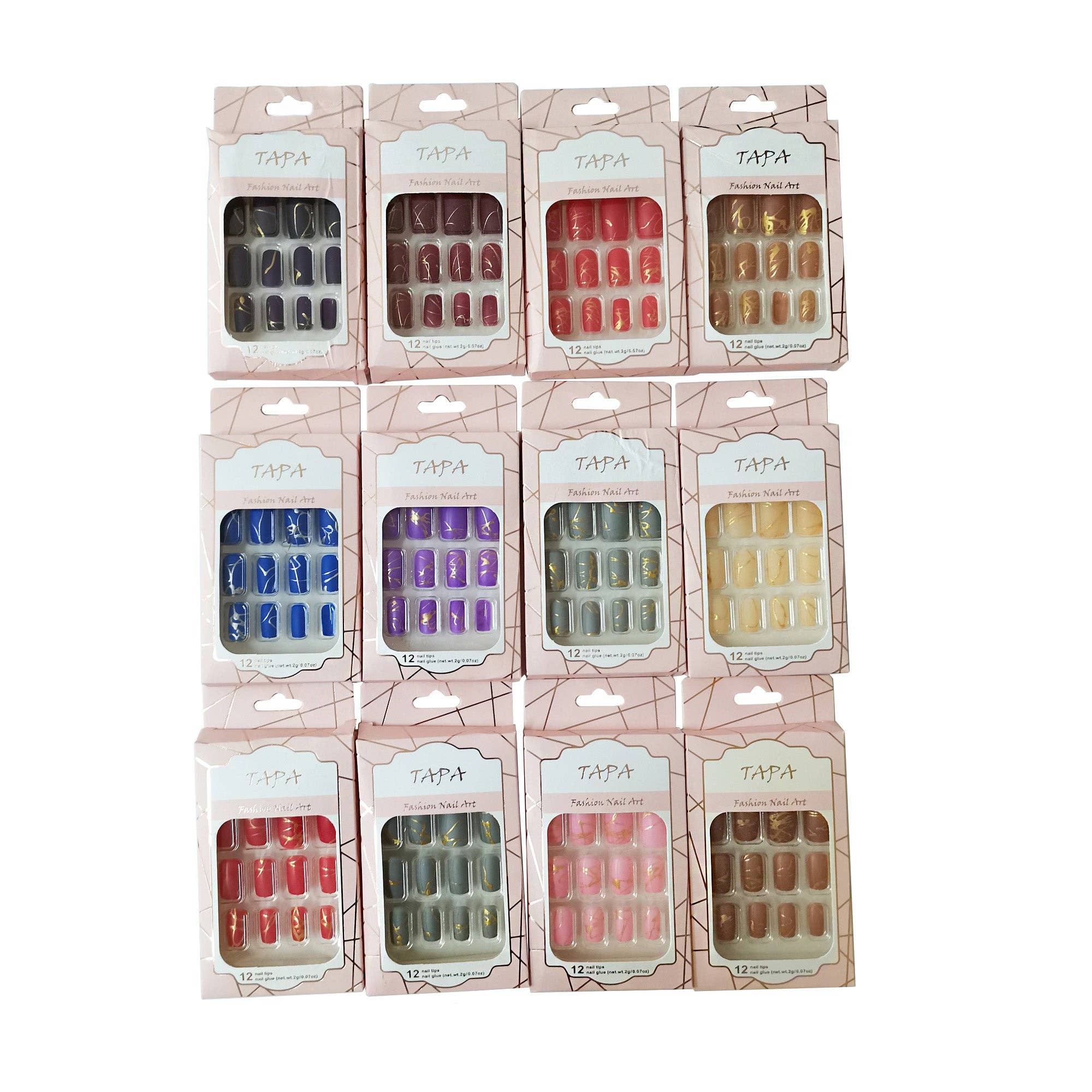 TAPA fashion Multi-Design Mandel-Kunstnägel Set SS1112-40 mit 12 verschiedenen Stilen. - Packung mit 12 Nägeln - Modell: SS1112-40 Vielseitiges Nail Art Set mit Aufklebern für kreative Designs.