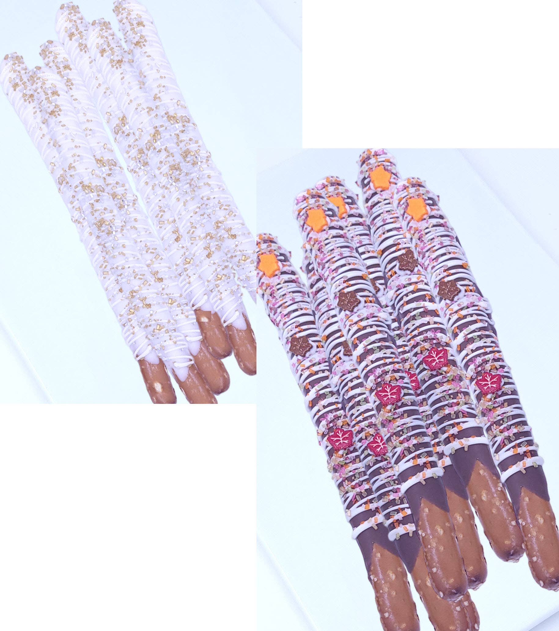 KONTAKTIEREN SIE UNS FÜR ANPASSUNGEN Versand bei heißem Wetter (HWS) verfügbar von April bis Oktober (erforderlich von Mai bis September). Beinhaltet Isolierung und Kühlpack(s). -In Gourmet-Konfekt-Schokolade getaucht (Guittard, Van Leer oder ähnlich) -Handgefertigt -Mit hochwertigen Zuckerkristallen und Vanille-Zuckerguss dekoriert -Jeder Stab einzeln in kristallklarem Plastikbeutel mit Drehverschluss für Frische verpackt -Haltbarkeit: ca. 2 Monate, Gefroren: bis zu 6 Monate