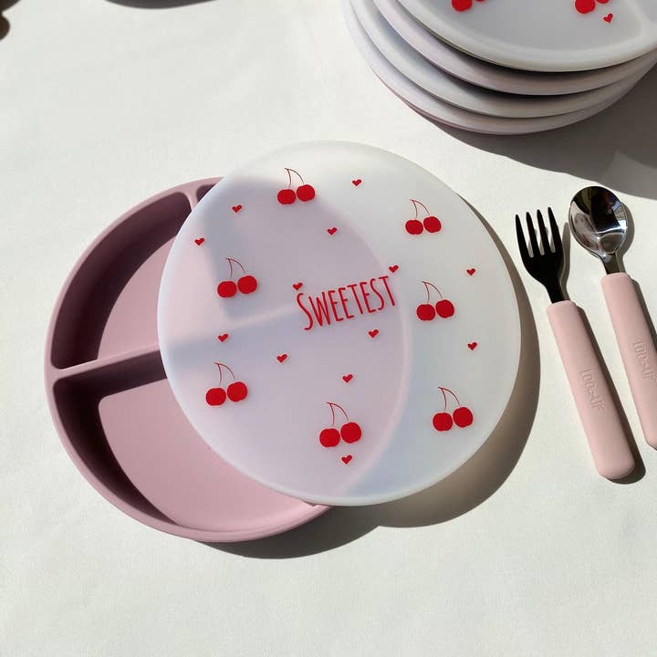 Set mit Schale, Teller, Besteck und Lätzchen zum Absetzen für Babynahrung, Rosa