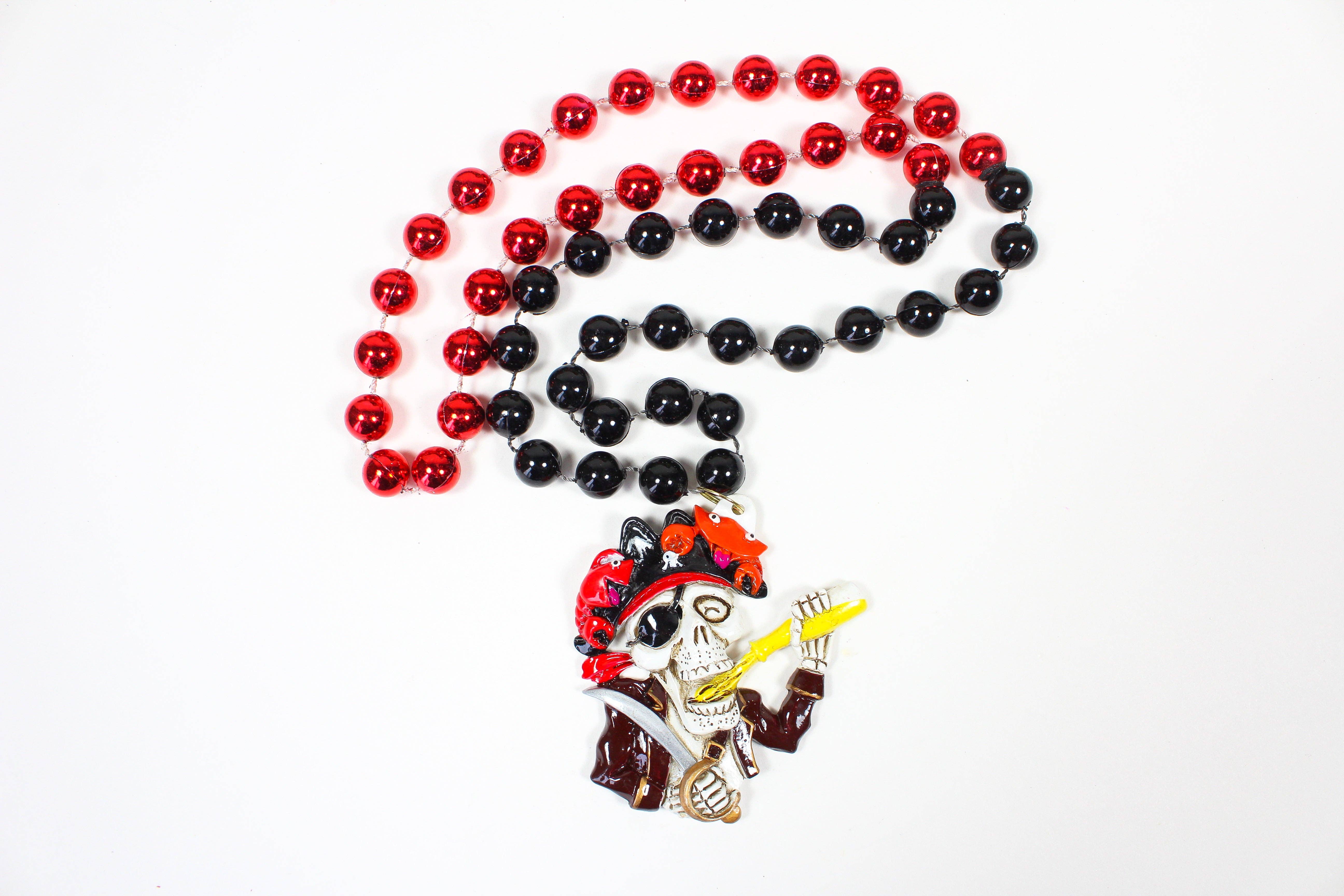 Wir lieben Garnelen! Diese 42 Zoll langen, 12 mm pfirsichrosa Perlen zeigen 3 gekochte Garnelen, die gleichmäßig entlang der Unterseite der Perlen verteilt sind. Nehmen Sie den Kochtopf mit in die Mardi Gras-Saison.