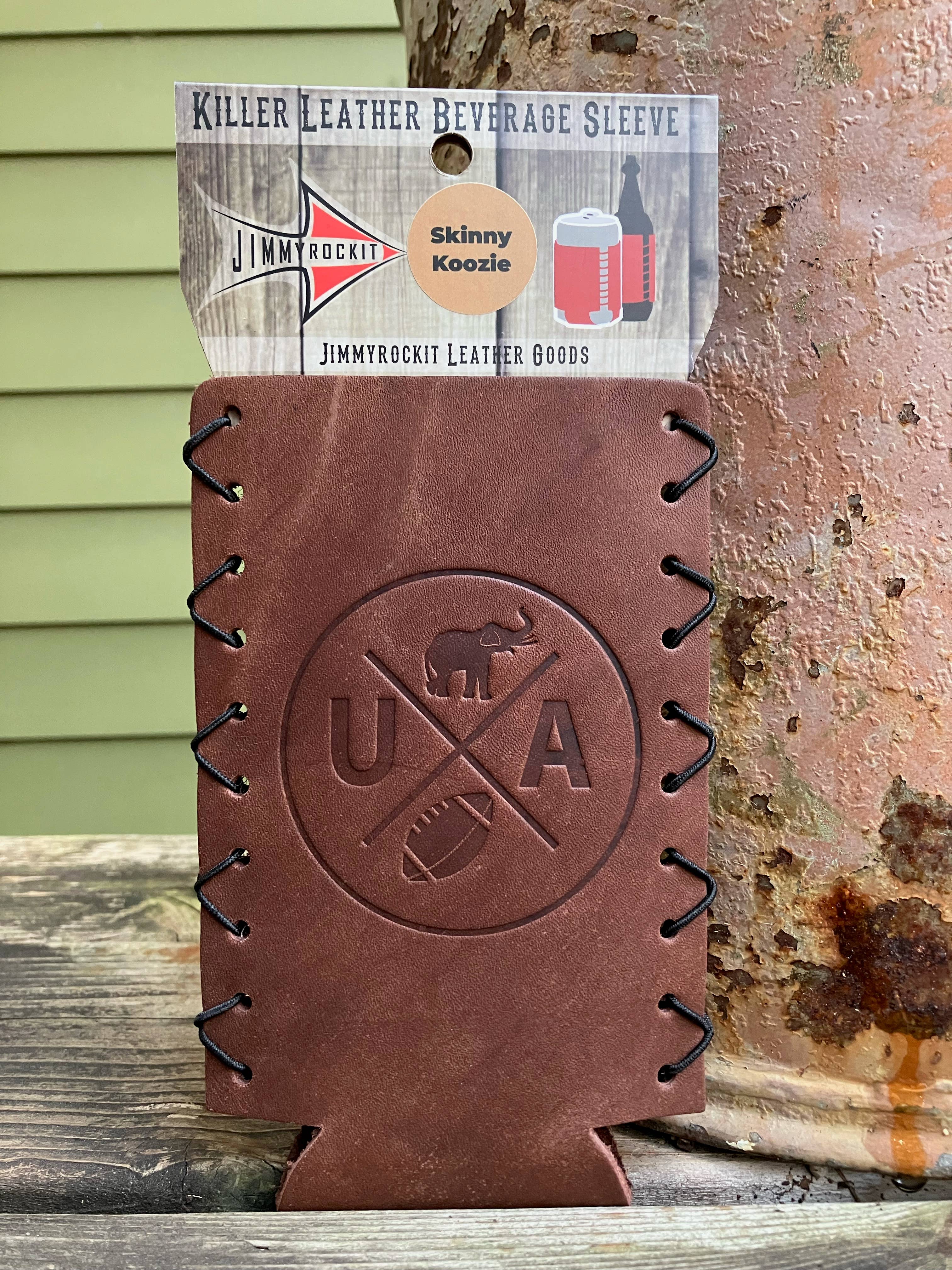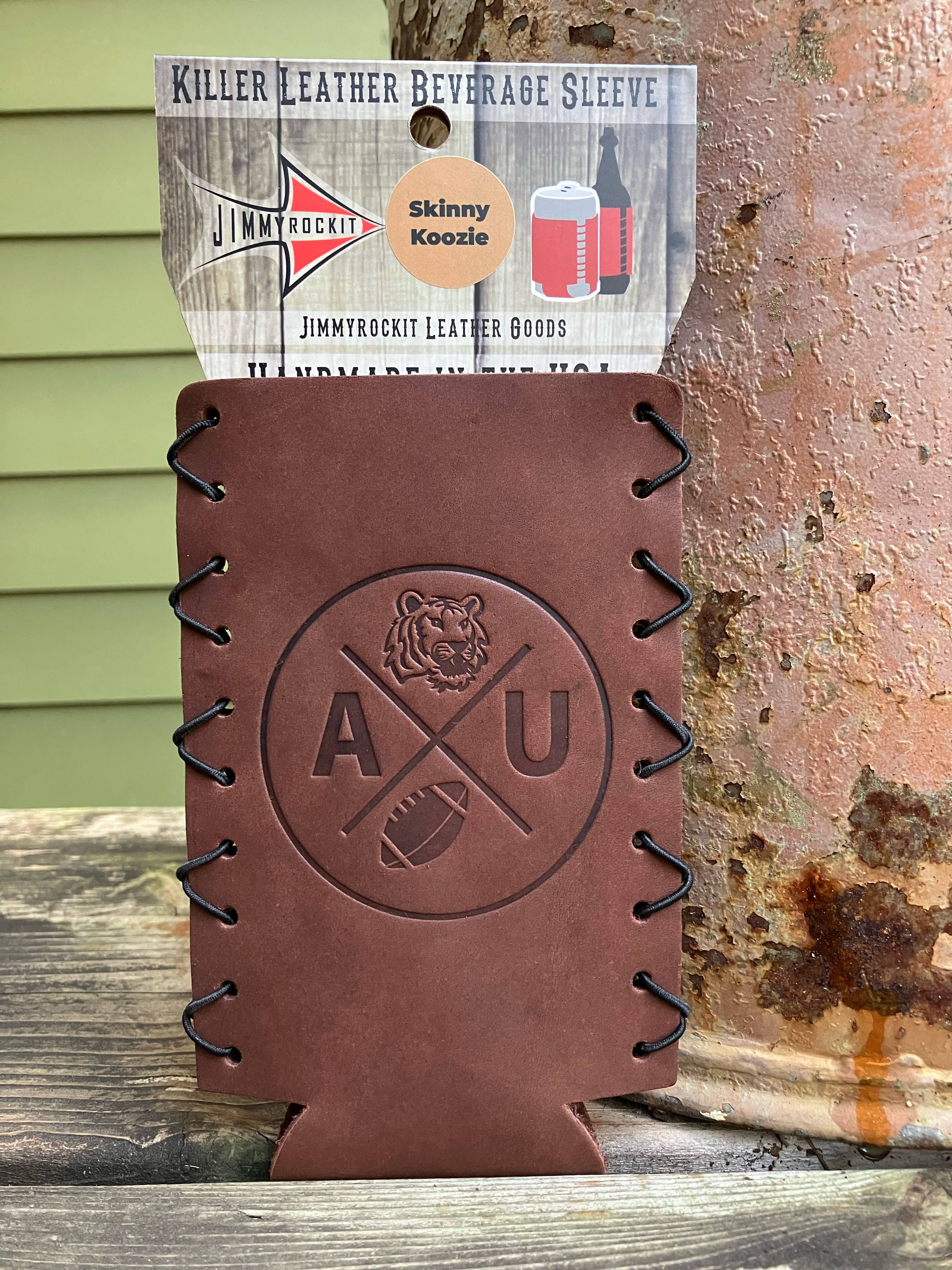 Whiskeyglas in Lederverpackung, Tennessee Football Ein 13 Unzen dickes Glas mit Glasboden und isolierter Neopren-Lederhülle. Unsere Whiskeyhüllen aus Leder legen sich um das Glas und lassen sich mit 3 vertikalen Druckknöpfen zusammenstecken. Gestempelt mit einem unserer Standarddesigns oder einem kundenspezifischen Design.