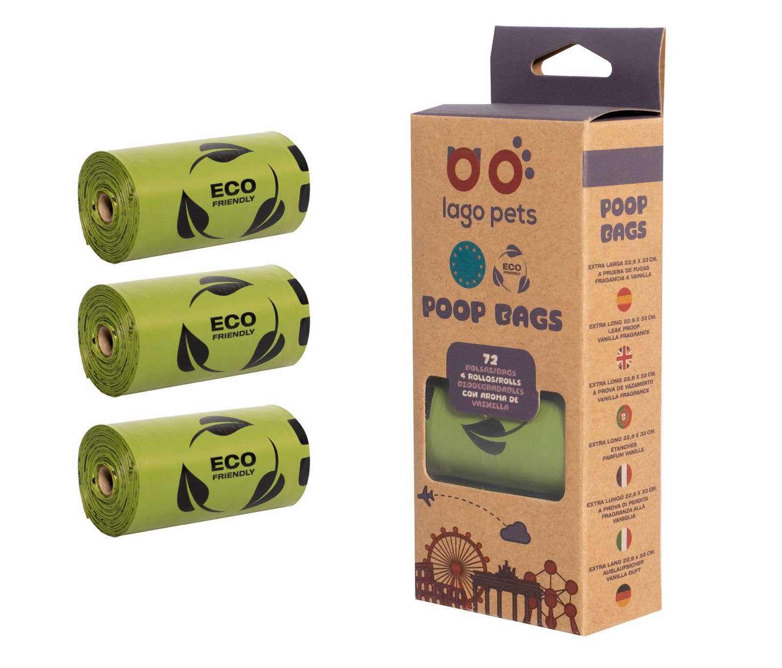 Unser Pack enthält 1080 Kotbeutel, sodass Sie immer einen zur Hand haben, wenn Sie ihn brauchen! Sie sind stark und lecken nicht, was die Reinigung schnell und einfach macht. Sie und Ihr Hund können Ihren Spaziergang sorgenfrei genießen! * 9” x 13” Kotbeutel * 60 Leinenrollen, 18 Kotbeutel pro Rolle * Perforiert für einfaches Abreißen * Passt in Standardspender * Hergestellt aus 38% pflanzlichen Materialien + 62% Polyethylen * USDA-zertifiziert biobasiert