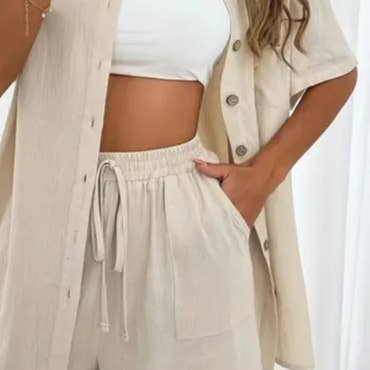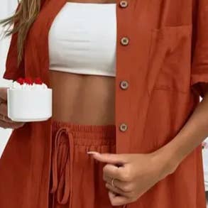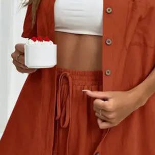 Dieses Oberteil- und Hosenset präsentiert ein schickes, von Blättern inspiriertes Design. Das lange Oberteil verleiht Eleganz und ergänzt die locker sitzenden Hosen. Ideal für einen stilvollen und dennoch bequemen Ausflug.