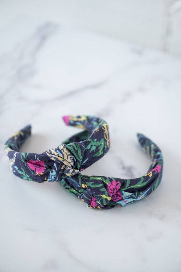 Handgefertigte, farbenfrohe Farbakzente ganz ohne Kopfschmerzen – probier eines und du wirst sehen! Unsere geknoteten Stirnbänder werden in Charleston, South Carolina von Mimis Mutter Keiko handgefertigt und mit unseren Lieblingsmustern der Saison gestaltet. Wir lieben unsere Stirnbänder, weil sie bequem sind und jedem Outfit eine stilvolle Note verleihen! Dieses Stück zeigt einen zeitlosen rosa Blumenprint vor hellem blauem Hintergrund. Perfekt, um jedem Outfit einen lebendigen Touch zu geben! Jedes Stirnband ist 1" (1 Zoll) breit. Die Stirnbänder sind etwas kürzer gearbeitet, um Schmerzen hinter den Ohren zu vermeiden. Dieses Angebot gilt für ein Stirnband. Begrenzte Stückzahl vorhanden.