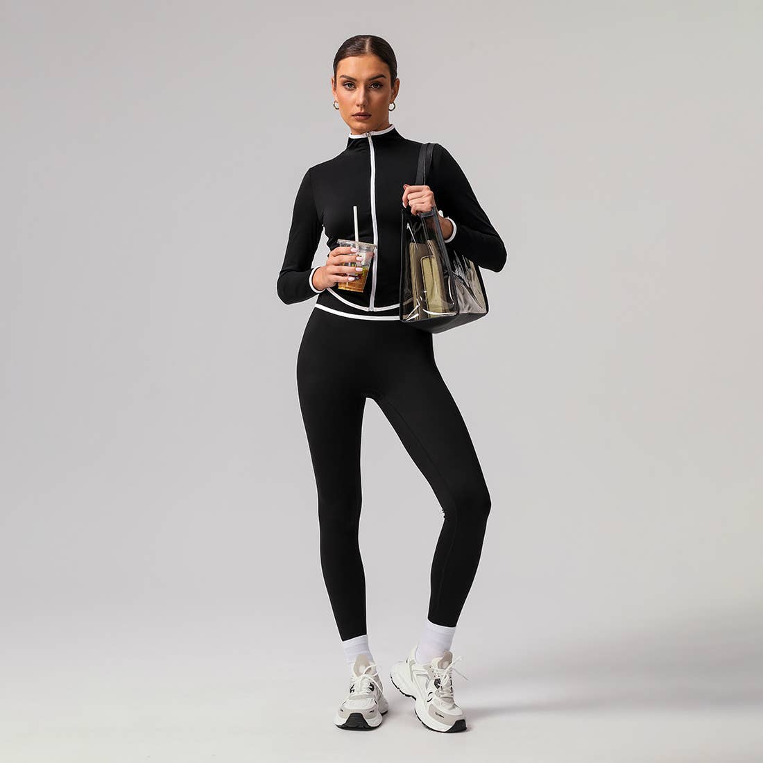 2-teiliges Sportset aus leichter Fleecejacke und Bauchformenden Leggings