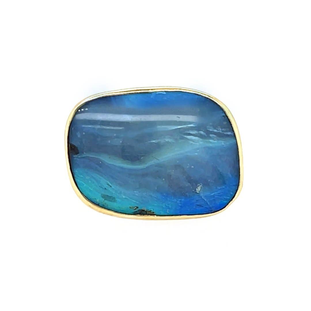 In 14k Gelbgold gefasst, ist dieser blaue Himmel Larimar so unglaublich fesselnd, dass Sie Ihre Augen nicht davon abwenden können. Abgeschlossen mit unserem handgefertigten Seetangband aus Sterlingsilber und Goldperlen. Größe des Mittelsteins: 16mm x 11mm Gewicht des Mittelsteins: 5,55 Karat Dieses einzigartige Stück wird in Emilys Studio im Hudson Valley von Hand gefertigt. Wenn Sie Fragen zur Größe, zum Versand haben oder Hilfe bei der Entscheidung benötigen, kontaktieren Sie uns bitte!