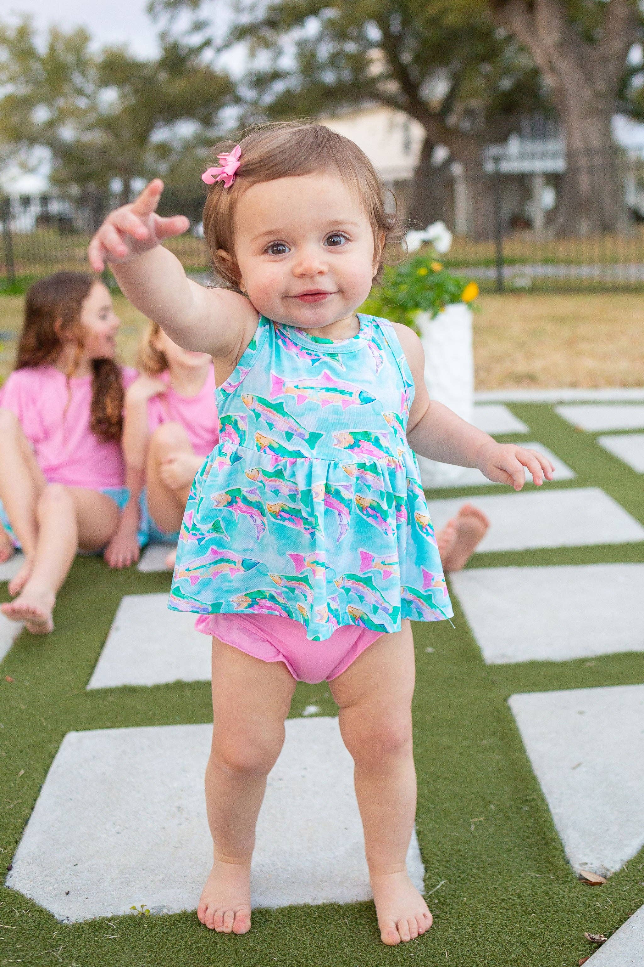 * Wassermelonen-Aquarelldesign * Hergestellt aus weichem, dehnbarem Stoff 95% Viskose aus Bambus, 5% Elastan * Tagfrei für empfindliche Haut * Knopfverschluss an der Beininnenseite für einfachen Windelwechsel * Entworfen, um süß und bequem für den Alltag zu sein