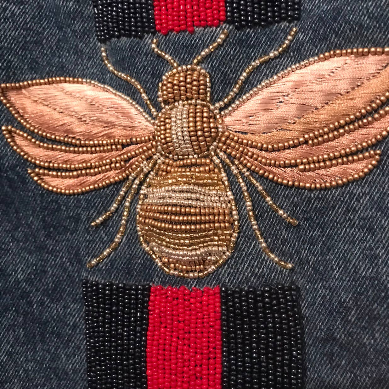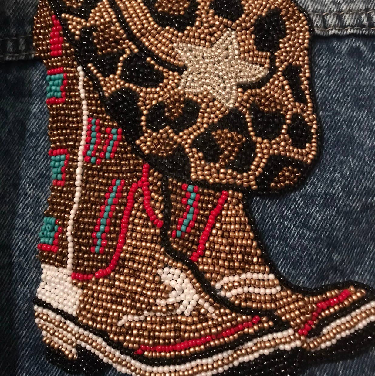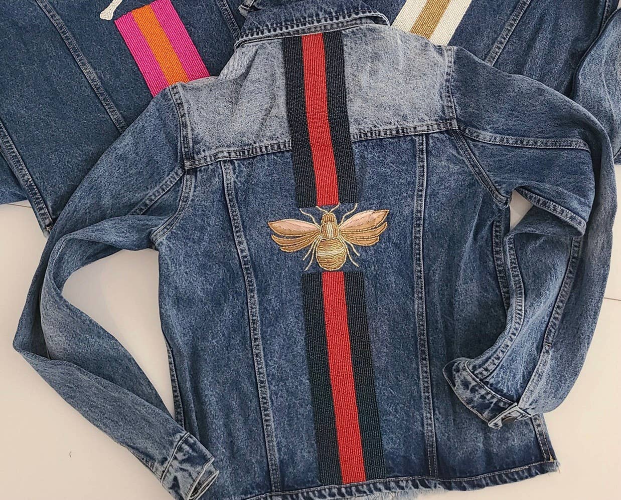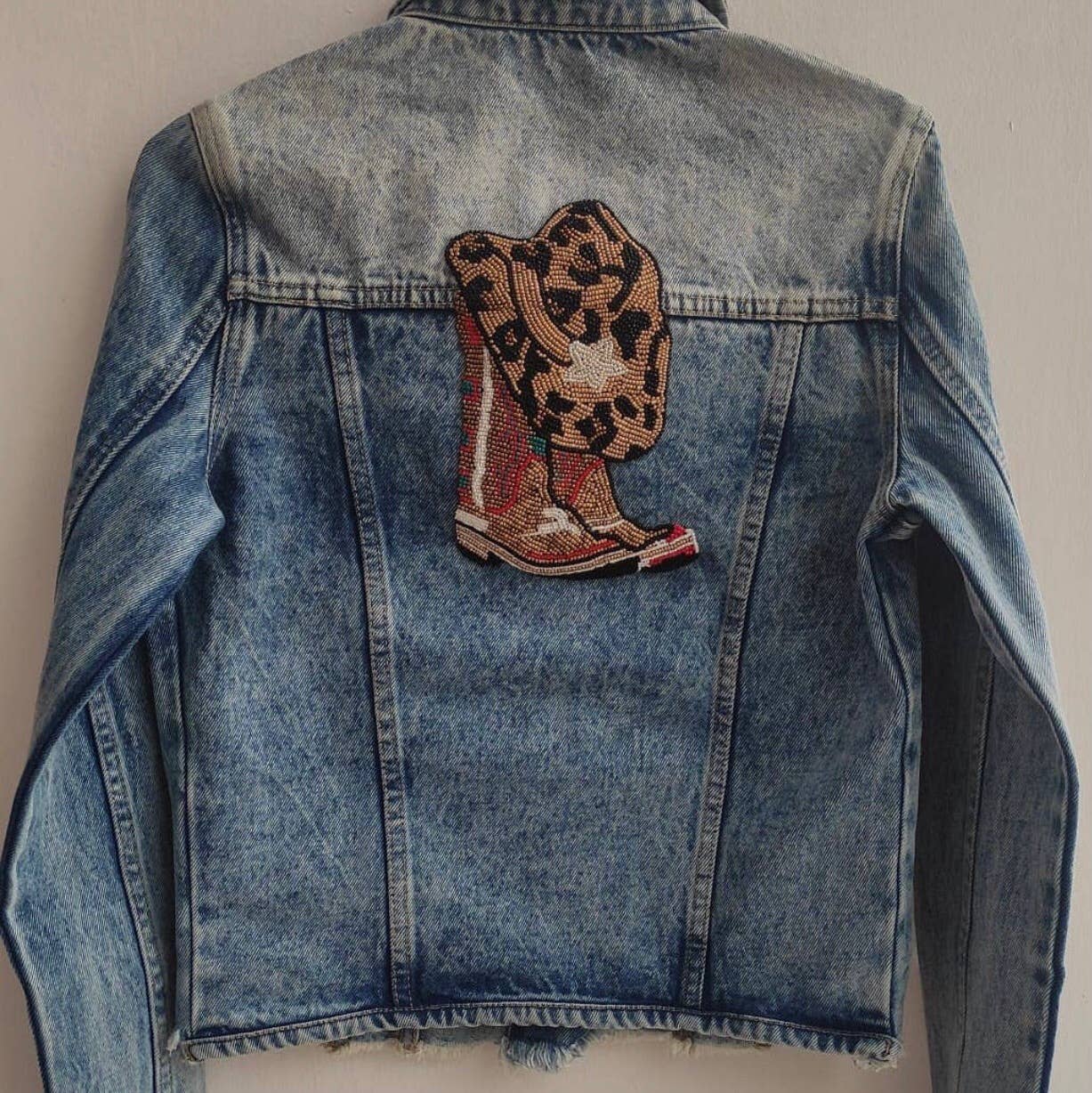 Kurz geschnittene Jeansjacke, verziert mit Glasperlen. 100% Baumwolle. Nur Fleckenreinigung