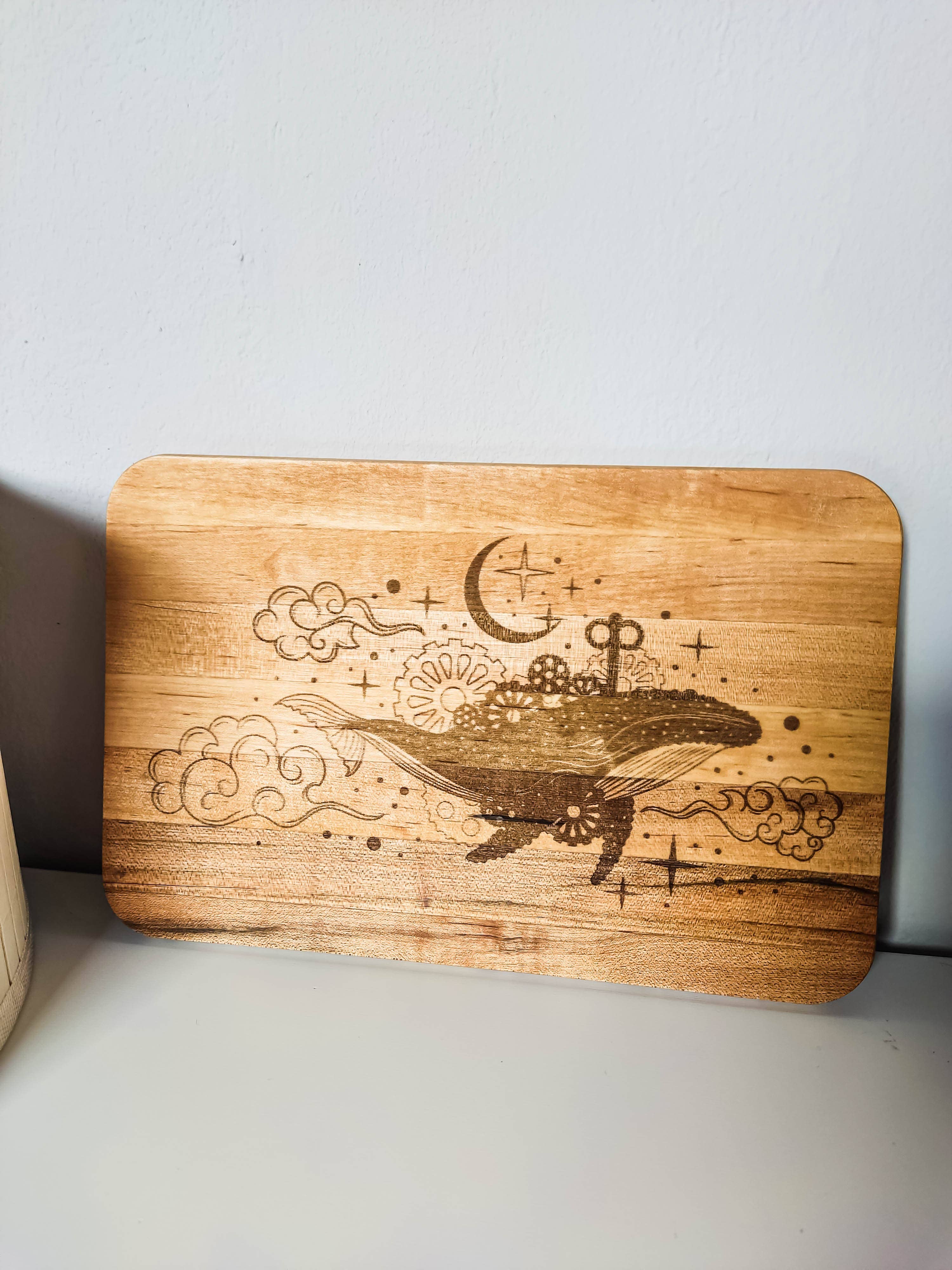 Genießen Sie die Raffinesse unseres Walnuss-Charcuterie-Bretts. Gefertigt aus hochwertigem Ahorn, besticht dieses Schneidebrett durch elegante blaue und türkisfarbene Wellen. Mit einem praktischen Ausschnitt kann es als Kunstwerk in Ihrer Küche präsentiert werden. Erheben Sie Ihr kulinarisches Erlebnis mit diesem exklusiven Stück. 28 cm x 15 cm x 2 cm Option zur Hinzufügung einer personalisierten Gravur. Schriftartenoptionen sind auf den Fotos zu sehen. Wir können auch ein Firmenlogo für 7,50 $/Artikel gravieren. Bitte kontaktieren Sie uns für weitere Informationen.