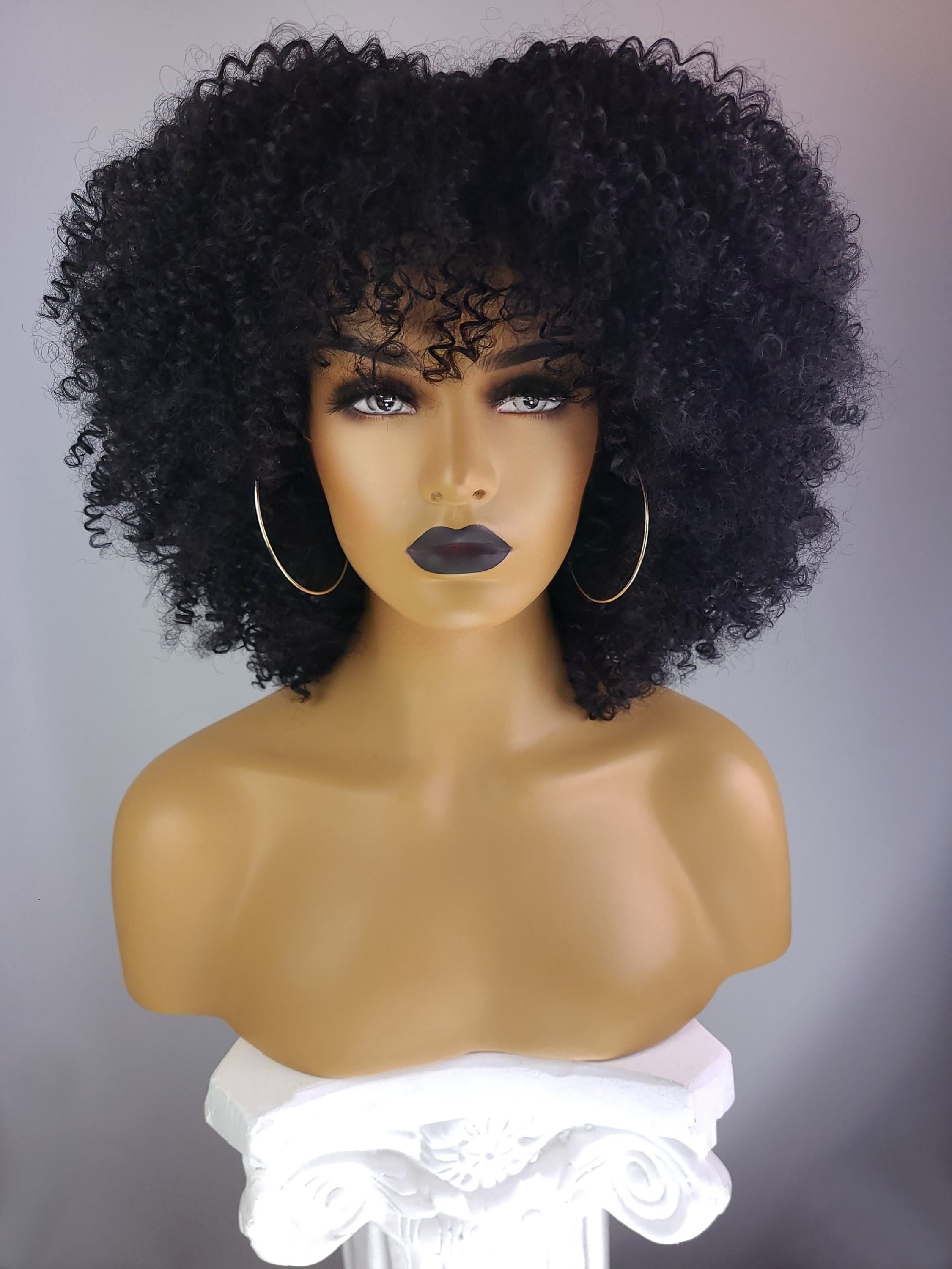 Afro Kinky Lockige Perücke mit Afro-Haaransatz, 40 cm, Farbe 1B im Großhandel
