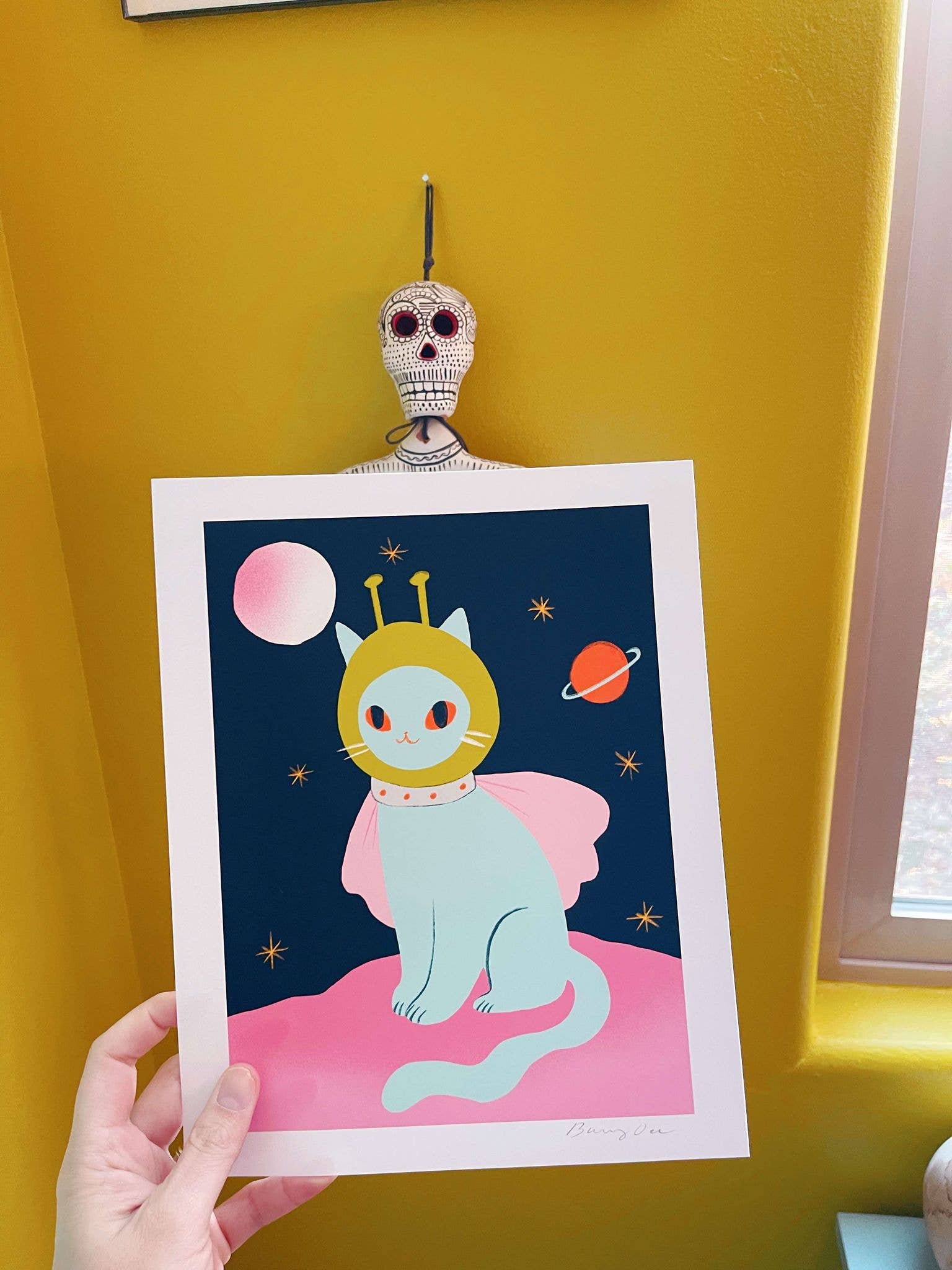 Das Kunstwerk von Bunny Dee ist die perfekte Ergänzung für unseren Laden. Die Farben sind satt und leuchtend, und Katzenliebhaber werden die Designs genießen!