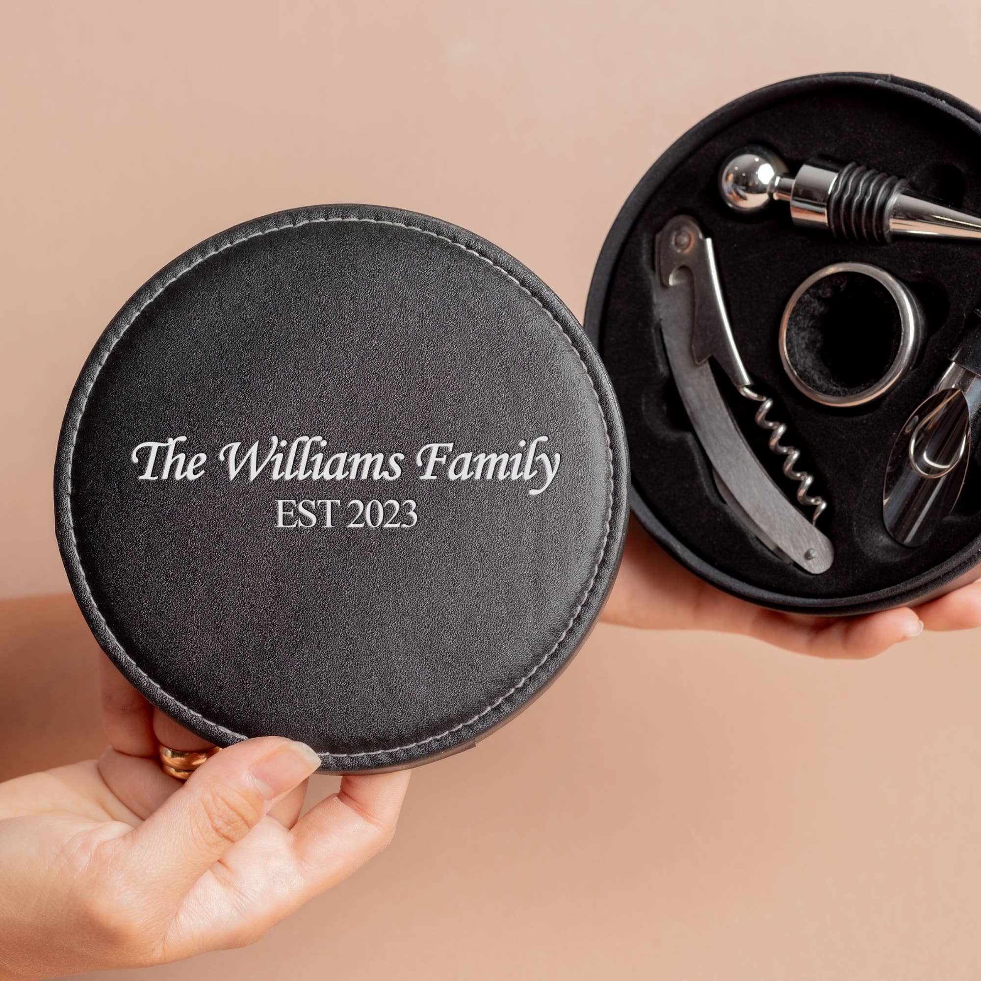 Schöne maßgefertigte Weinflaschen-Holzstopfen, perfekt zum Personalisieren mit jedem Namen, Datum, Spruch oder Logo, das Sie möchten. Diese sind ein tolles Geschenk für neue Hausbesitzer, frisch verheiratete Paare, Hochzeitsgeschenke und Hochzeitsdekoration. ARTIKELDETAILS Material: Holzoberteil und synthetischer Korken Höhe: 1,8 Zoll - 30 mm Breite: 1,14 Zoll - 29 mm Durchmesser des synthetischen Korkens: 0,8 Zoll - 19 mm Lasergraviert für ein feines Finish, aber langlebige Haltbarkeit Famgraving