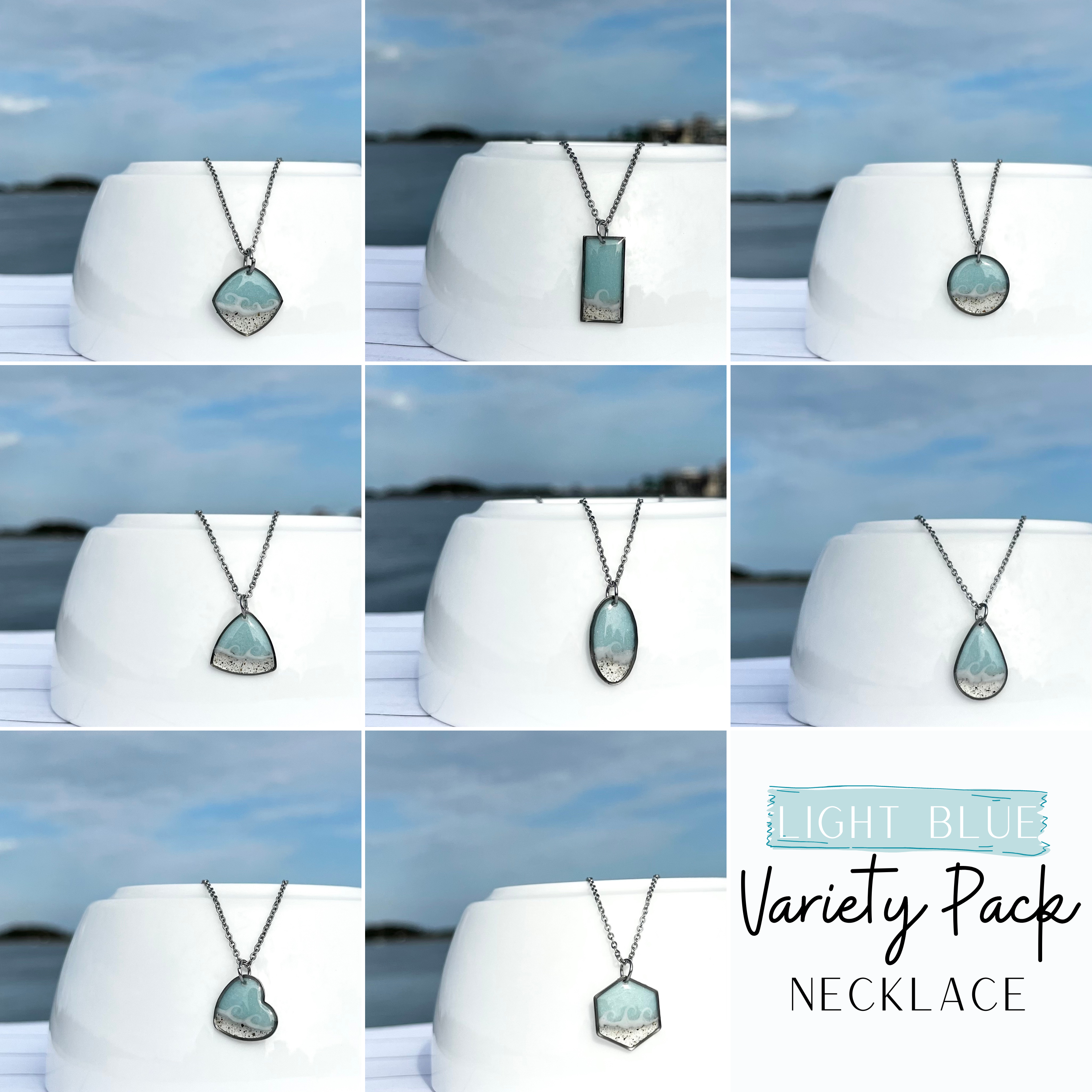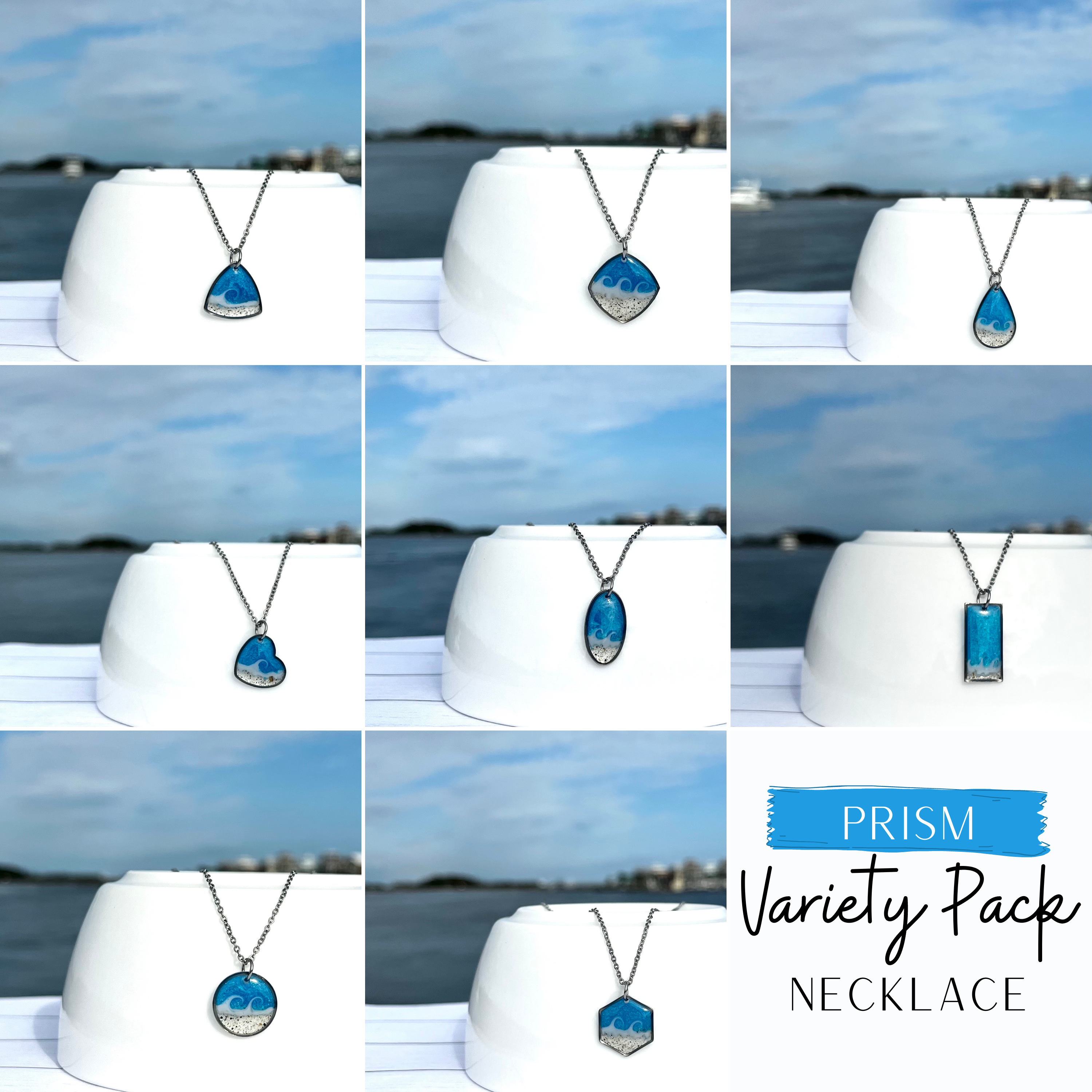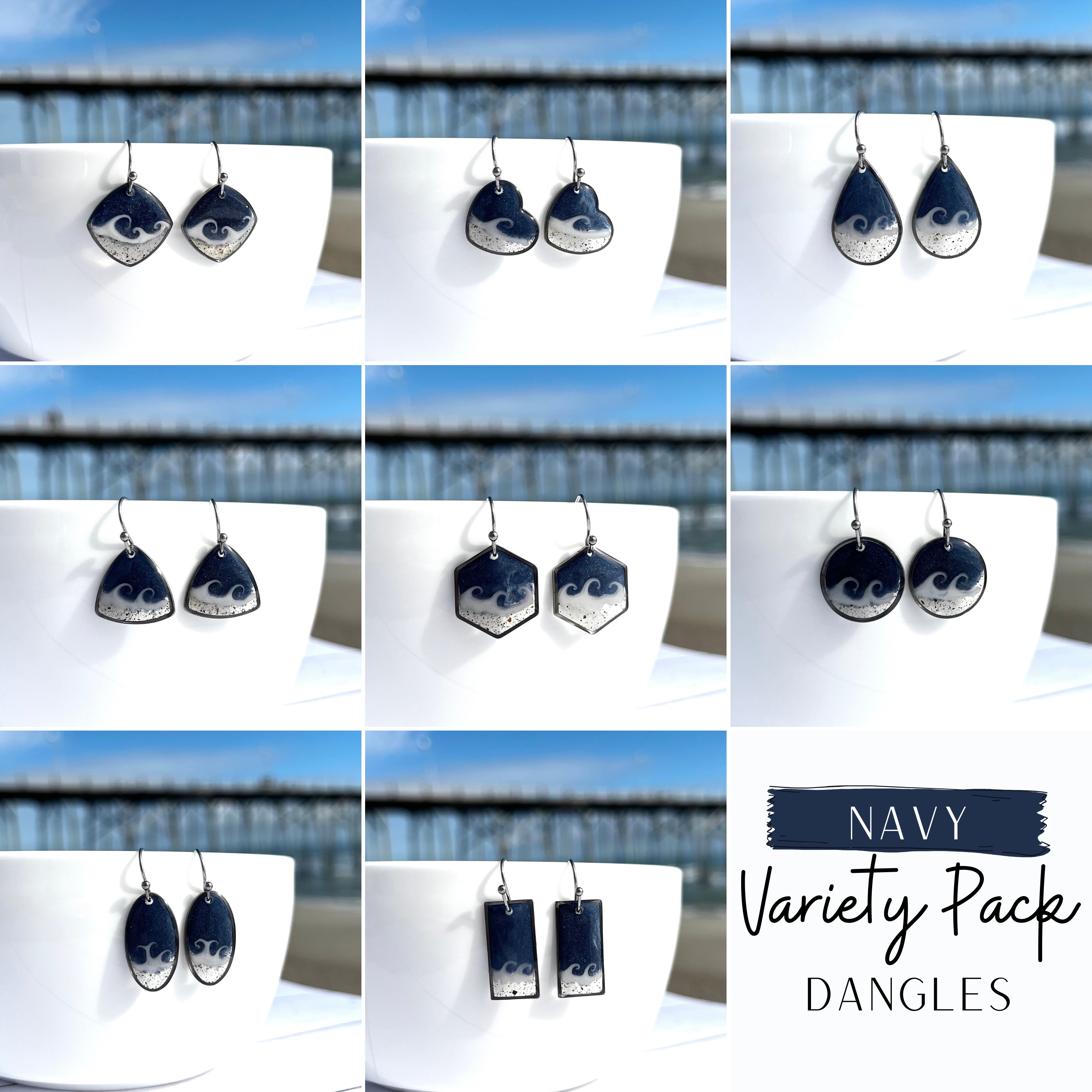 Einzigartige, handgefertigte Ohrhänger mit echtem Strandsand, mit denen Sie Ihren Lieblingsstrand immer in Ihrer Nähe haben. Perfekt, um Sie an Tage zu erinnern, an denen Sie die Sonne in der Meeresbrise genossen haben. Ein ideales Geschenk für Ihre Mutter, Schwester, Tochter oder wer auch immer Ihre Strandbestie sein mag. Das Varieté-Paket beinhaltet 8 Paar Ohrhänger in den gleichen Farben. Jedes Paar wird mit Sorgfalt hergestellt und keine zwei Paare sind genau gleich. Bitte beachten Sie, dass Wellenform und Sandbeschaffenheit variieren, genau wie von Strand zu Strand. Bitte wählen Sie, ob Sie meinen Sand verwenden oder mir Sand beim Auschecken zusenden möchten. Ich habe eine Vielzahl von Sandstränden aus North Carolina und anderen Stränden, die ich gerne für die Herstellung Ihres Schmucks verwenden würde. Wenn ich Ihren speziellen Strand nicht habe, benötige ich etwa eine Tasse, die an mein Postfach geschickt wird, bevor ich loslegen kann. Jedes Paar Ohrringe wird auf einer Karte mit einer Karte des ausgewählten Gebiets geliefert, wobei der Ort auf der Unterseite hervorgehoben ist. Die Ohrringe sind aus Edelstahl gefertigt.