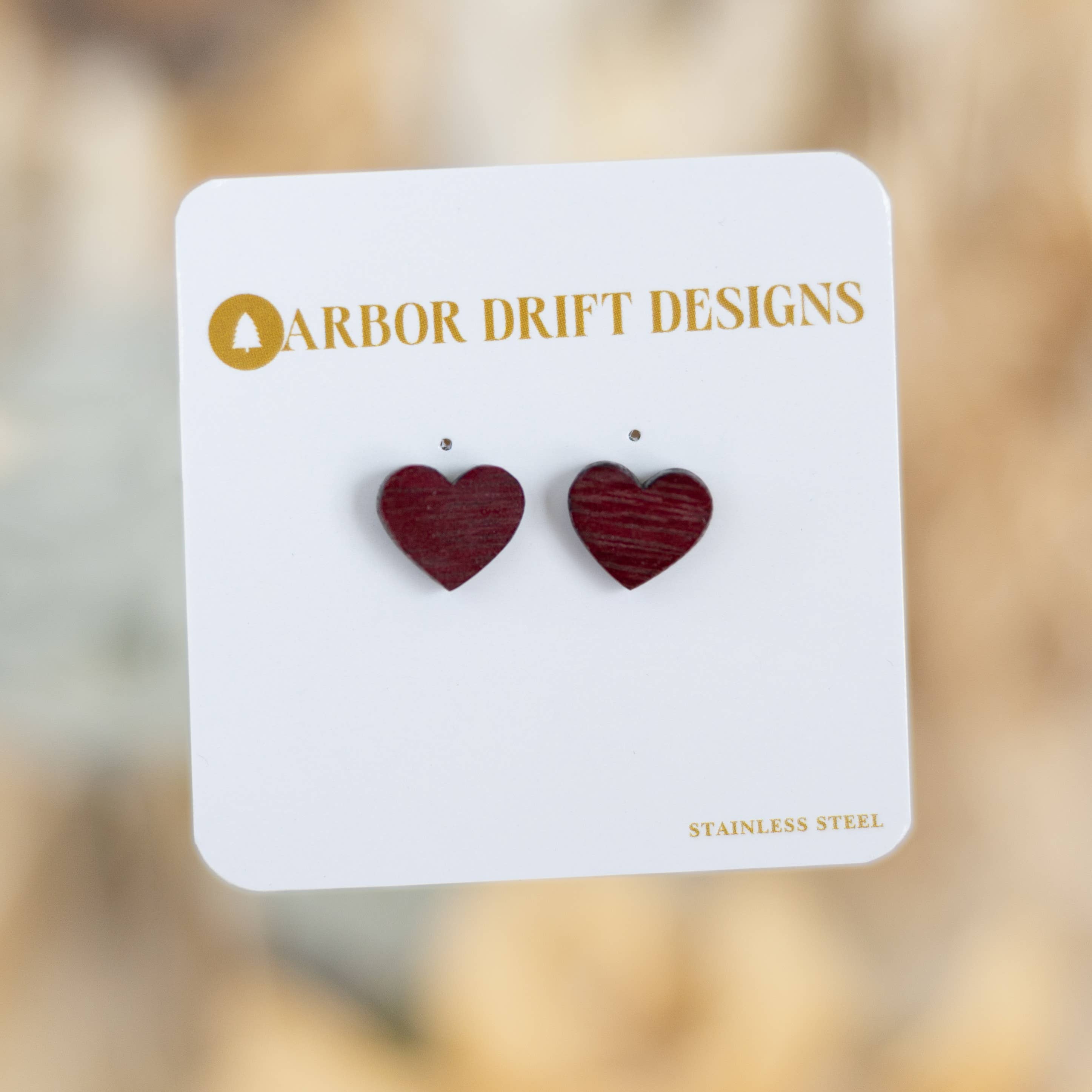 Verleihen Sie mit unserem Heart Zebrawood Stud Ohrring von Arbor Drift Designs einen Hauch natürlicher Eleganz. Dieser handgefertigte Ohrring verfügt über ein einzigartiges Zebraholz-Maserungsmuster in einer bezaubernden Herzform. Es ist auf einem Edelstahlpfosten montiert und bietet leichten, hypoallergenen Komfort — ideal für den täglichen Gebrauch. Perfekt für Liebhaber umweltfreundlicher, handwerklicher Mode.