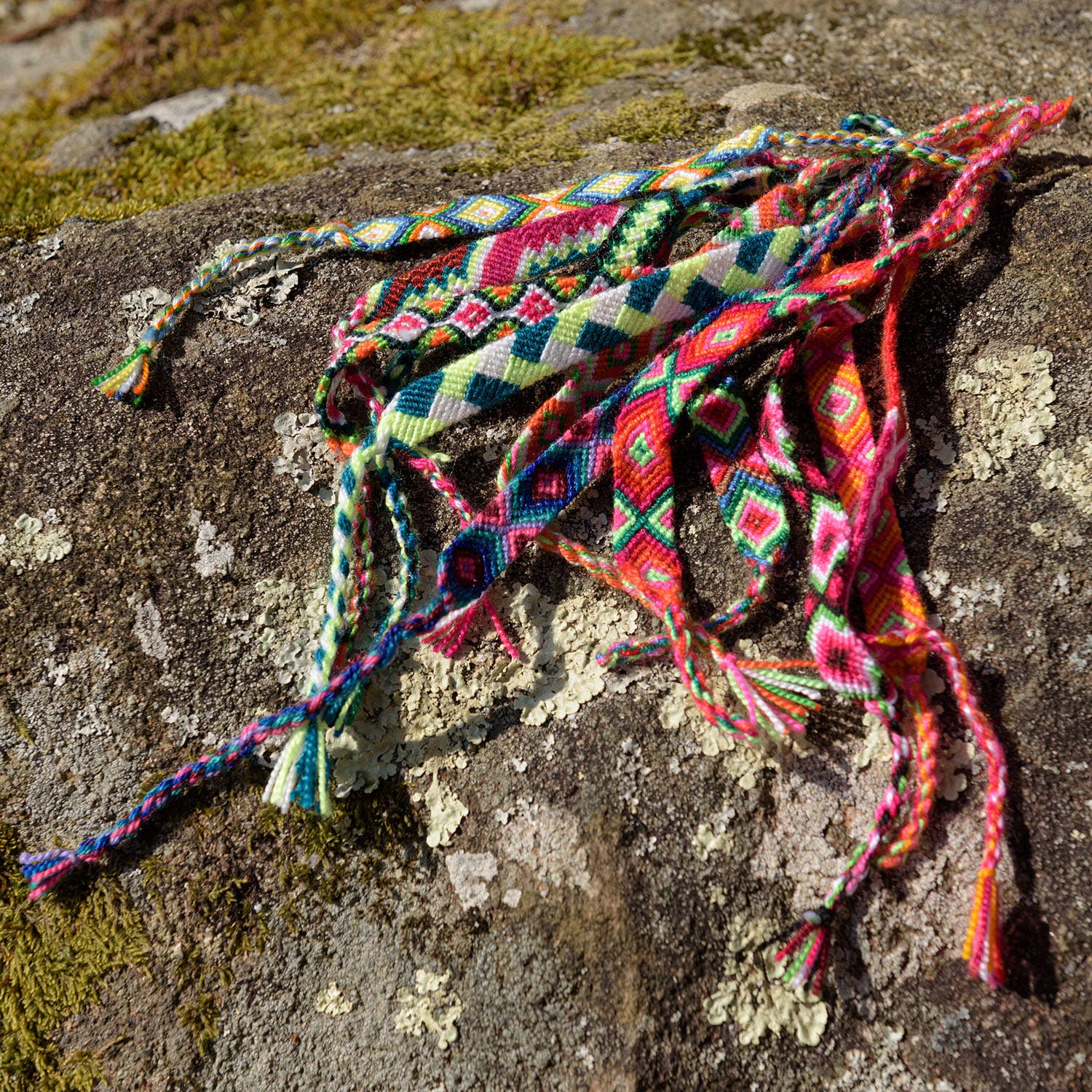 Los von 50 brasilianischen Armbändern, hergestellt mit einem Webstuhl und aus Acryl für eine bessere Beständigkeit gegen Wasser und Zeit. Die Armbänder werden auf handwerkliche Weise hergestellt, jedes Set enthält eine Vielzahl von Modellen, die für jeden geeignet sind: Kinder und Erwachsene, Männer und Frauen. (nicht vertragliche Fotos)