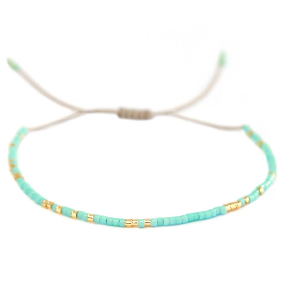 Dünnes Armband aus bunten Miyuki-Perlen. Das Miyuki-Armband lässt sich einfach in der Größe verstellen.