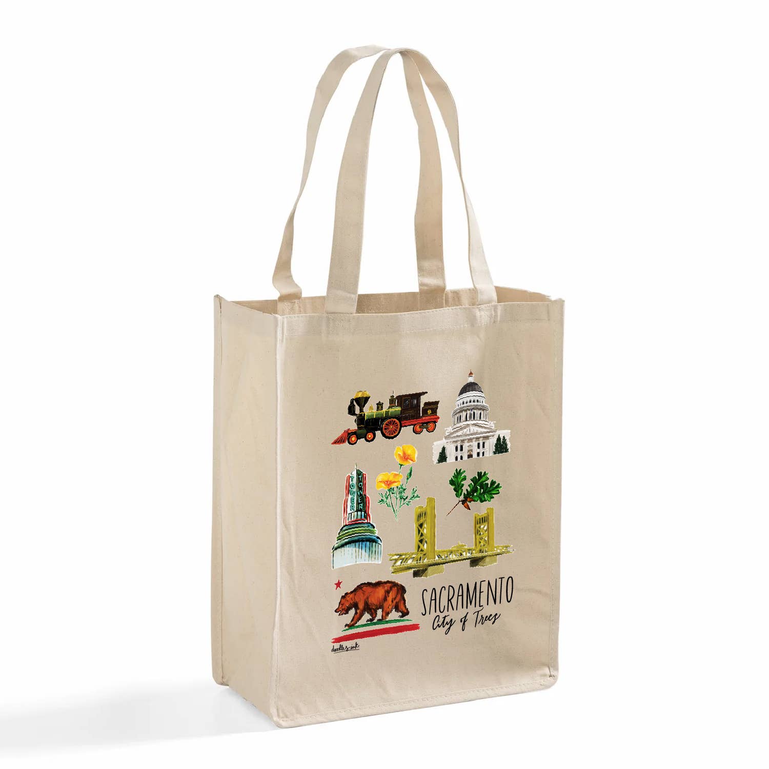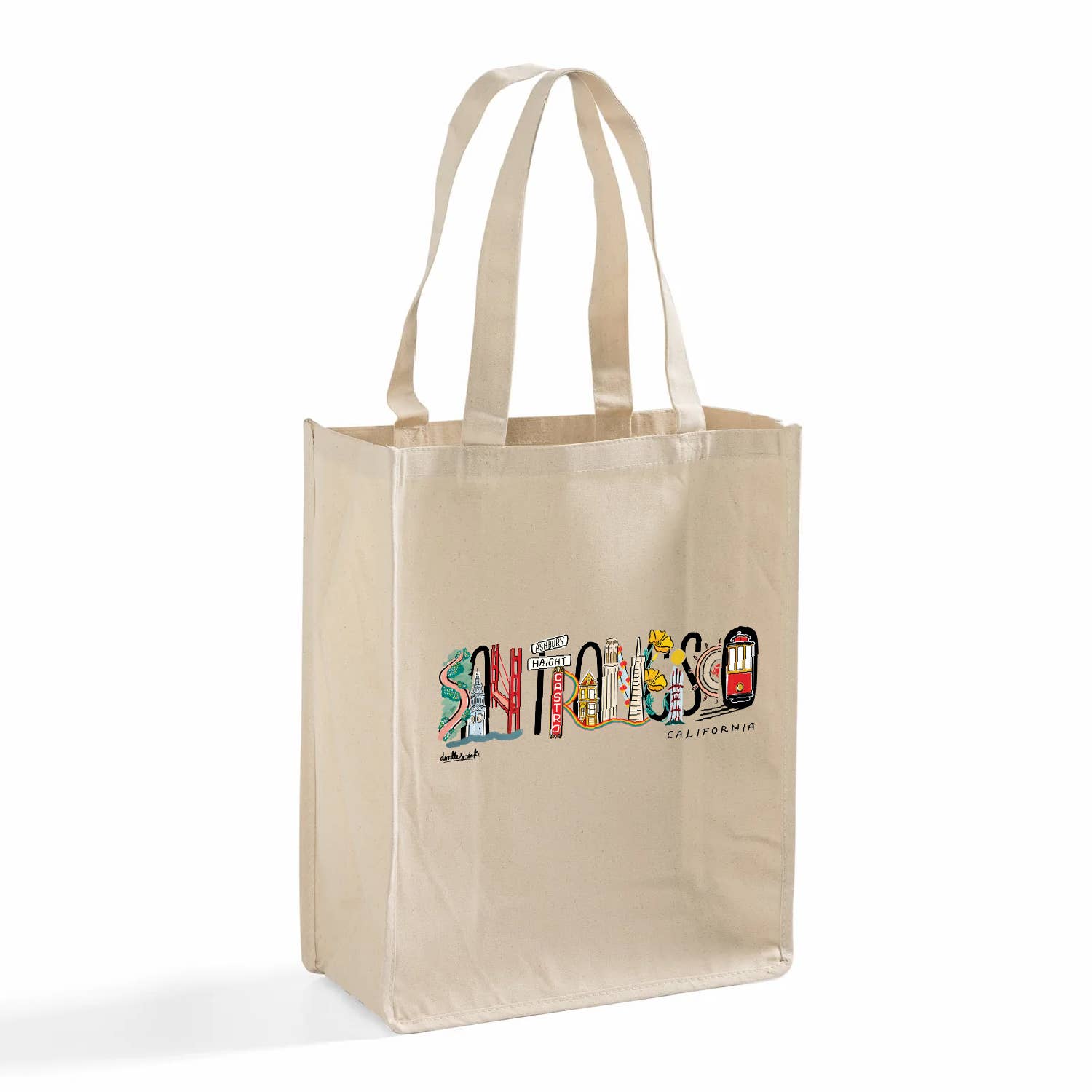 100 % Baumwolle Recyceltes Segeltuch Größe: 35,5 cm B x 35,5 cm H x 7,6 cm T Grifflänge: 45,7 cm Entworfen und bedruckt in Kalifornien