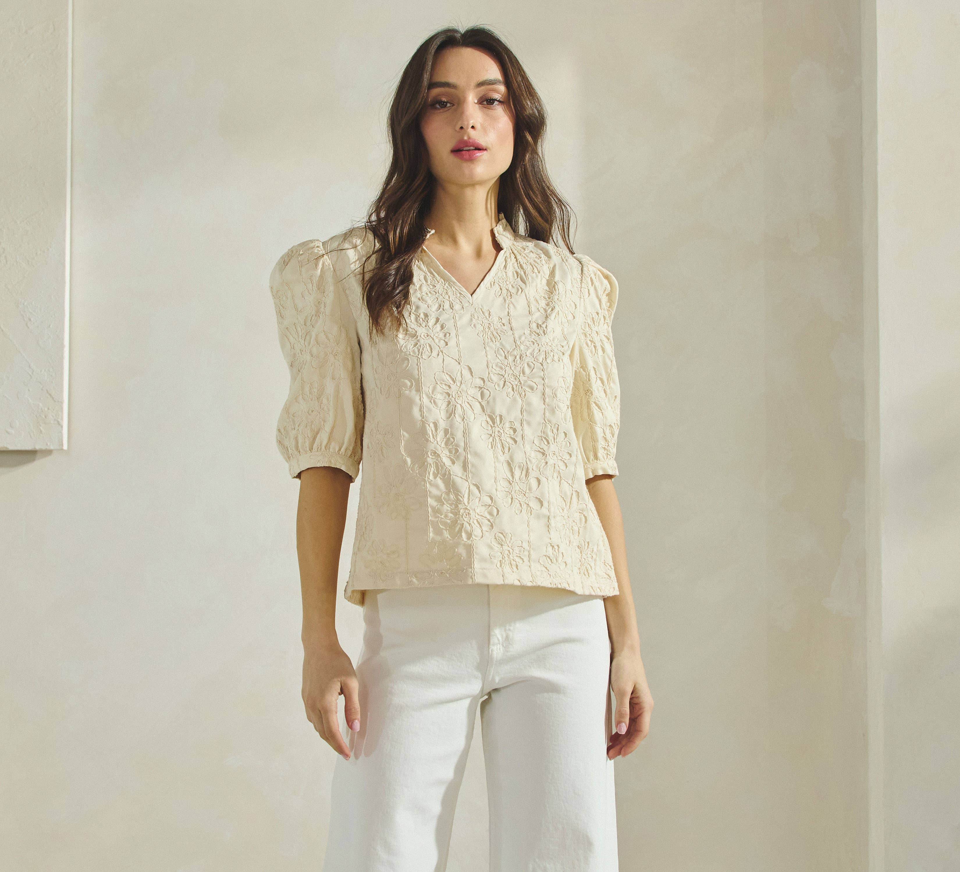 - Florale Stickereidetails - Hemd mit Knopfleiste - Langarmoberteil Modelmaße: 5'8" groß Das Model trägt Größe S (US)