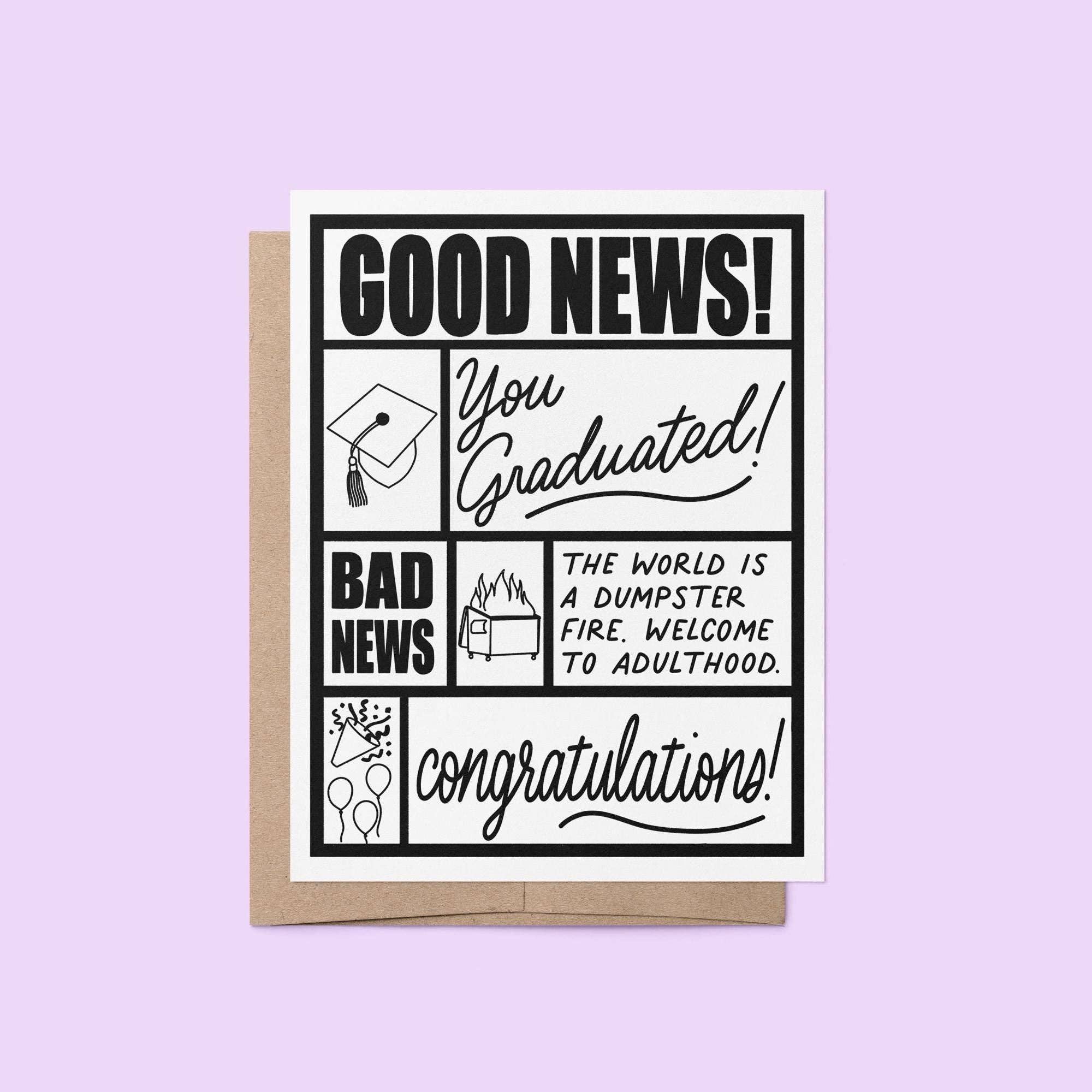 Handgezeichnete, handgeschriebene "conGRADulations" Glückwunschkarte zur Graduierung mit leuchtend grünem Zickzack-Rand. - Gefaltete Größe von 4,25 x 5,5 Zoll - Innen leer - Wird mit einem A2 Kraftumschlag geliefert - Verpackt in einer Zellophanhülle **Bitte beachten Sie, dass die Farbe der tatsächlichen Karte aufgrund der Einstellungen des Geräts, auf dem Sie die Anzeige betrachten, leicht variieren kann. Copyright - MangoIllustrated, Katie Valentine