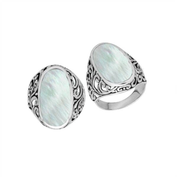 AR-8102-MO Kissenförmiger Morganit-Quarz-Ring aus Sterlingsilber mit detaillierter balinesischer Rollengravur im Großhandel