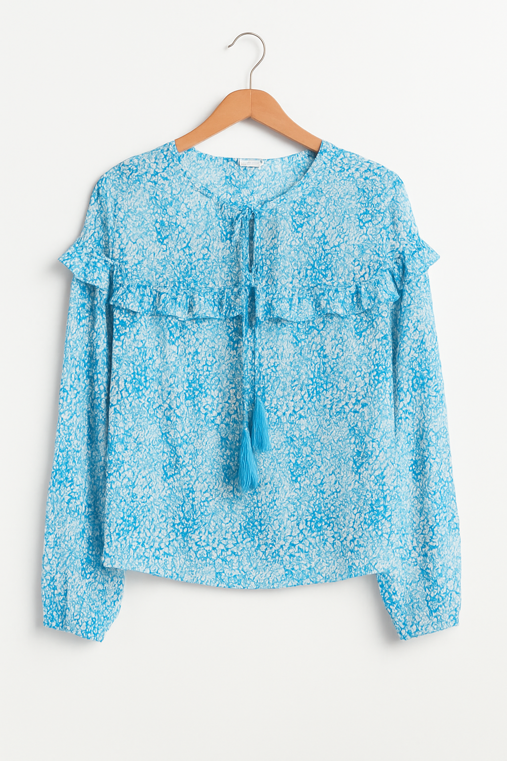 Noch keine Bewertungen für Langärmelige Bluse mit Lagen, ausgestellten Ärmeln und Schleifenkragen.