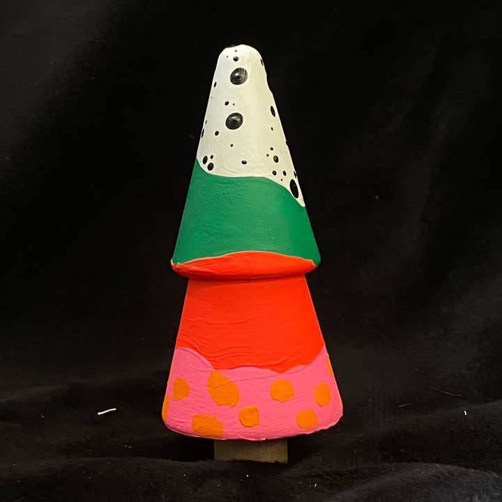 Diese Keramikvase hat ein neues Leben als offizielles Artefakt der Freude erhalten. Sie ist lebhaft mit Acrylfarben bemalt und mit einem lebensmittelechten Harz versiegelt, um Haltbarkeit zu gewährleisten. Drehen Sie diese Vase in jede Richtung und erhalten Sie eine andere Ansicht! Sie ist hundertprozentig ein Unikat. Größe: 9 Zoll hoch, 3,5 Zoll breit und 8 Zoll breit