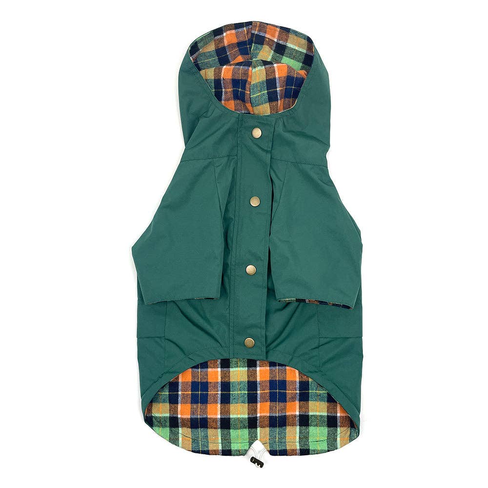 Halten Sie Ihren Hund trocken und bequem mit unserer meistverkauften Hunderegenjacke. Perfekt für Spaziergänge in der Stadt und auf dem Land, kombiniert diese Regenjacke zeitlosen Bergparka-Stil mit praktischen Funktionen und ist ein Muss für jeden Hundebesitzer. Hauptmerkmale: * Wasserabweisende Außenschicht: Hergestellt aus 100% Polyester, um Ihren Hund bei jedem Wetter trocken zu halten. * Atmungsaktives Futter: Leichtes Baumwollmischflanellfutter sorgt für Komfort und Atmungsaktivität. * Doppelte Verschlussoptionen: Sicherer Reißverschluss ergänzt durch eine vordere Brustlasche mit Klettverschluss für zusätzlichen Komfort. * Leinenöffnung: Praktische Leinenöffnung im Nackenbereich für den Zugang zum Geschirr.