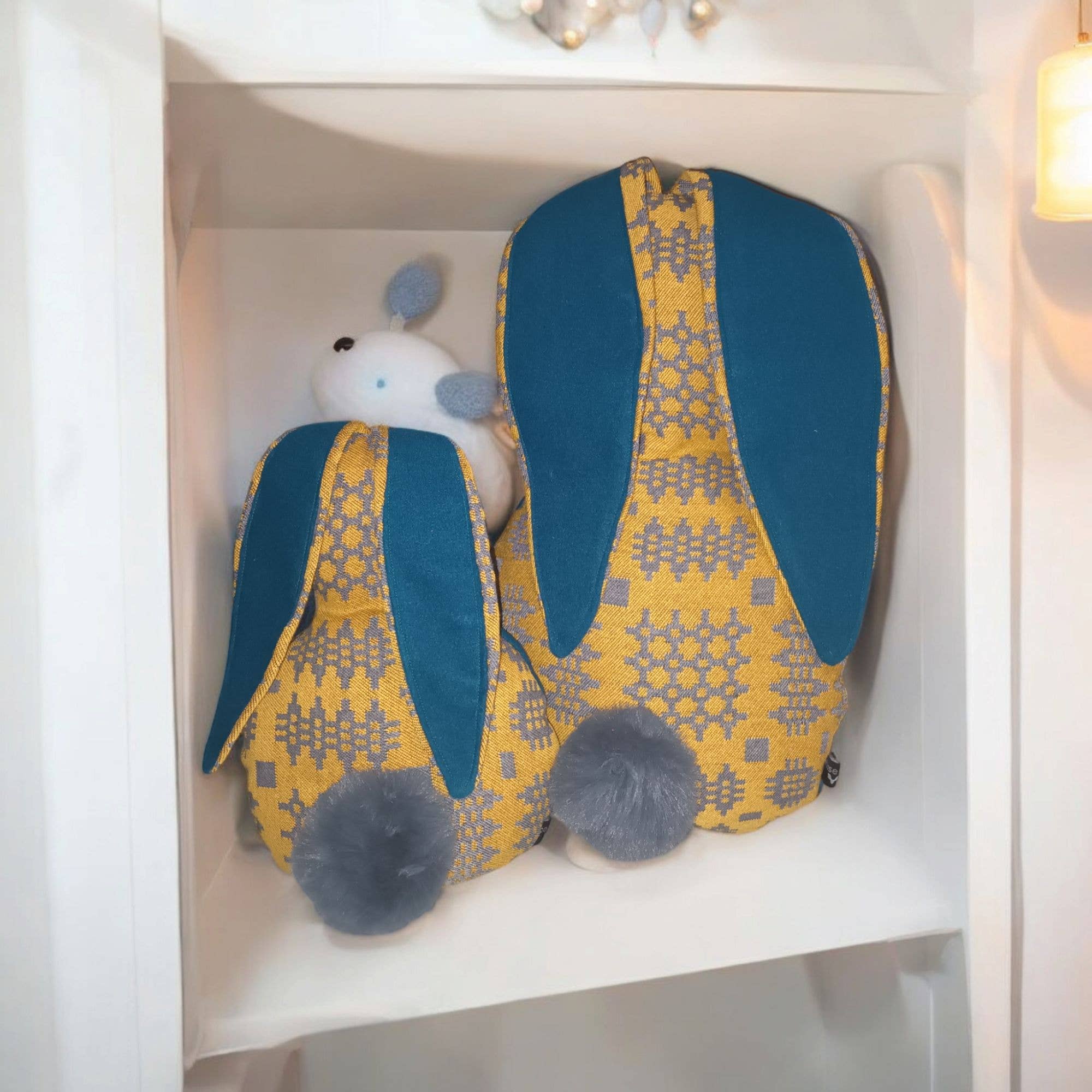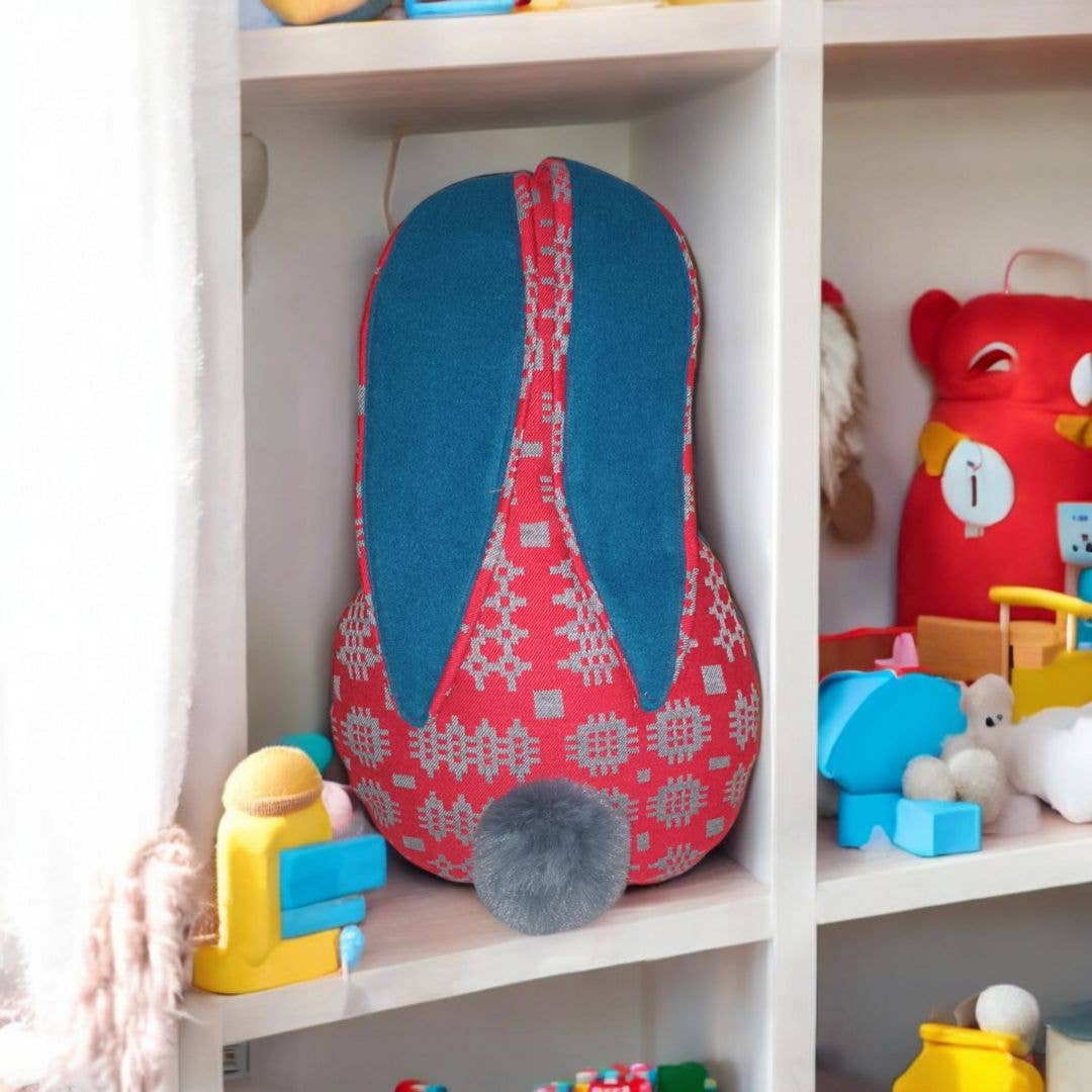 Kaninchenförmiges Kissen mit großen, schlaffen Ohren, perfekt für ein Babyzimmer. Es besteht aus hochwertigen, nachhaltigen Stoffen und verwendet eine moderne Variante des walisischen Tapisseriedesigns. Es ist mit hypoallergener Polyesterfüllung gefüllt. Dieses dekorative Kissen ist eine großartige Ergänzung für Ihr Bett, Sofa oder Ihren Lieblingssessel im Schlafzimmer, Wohnzimmer oder Kinderzimmer. Es ist ein tolles Geschenk, um jeden Raum zu dekorieren oder als Osterdekoration. Mit 13 Farben zur Auswahl und sie kommen mit einem weichen Wolltouch-Kontraststoff für Bauch und Ohren. Unser taubenblaues Tapisserie-Kaninchenkissen hat eine dunkelgraue Rückseite mit weichem Touch. Größe ca. 40 x 26 cm. Jedes wird auf Bestellung handgefertigt.