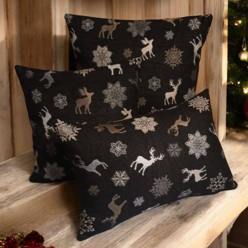 Schwarze Weihnachtskissen mit Hirschmotiv