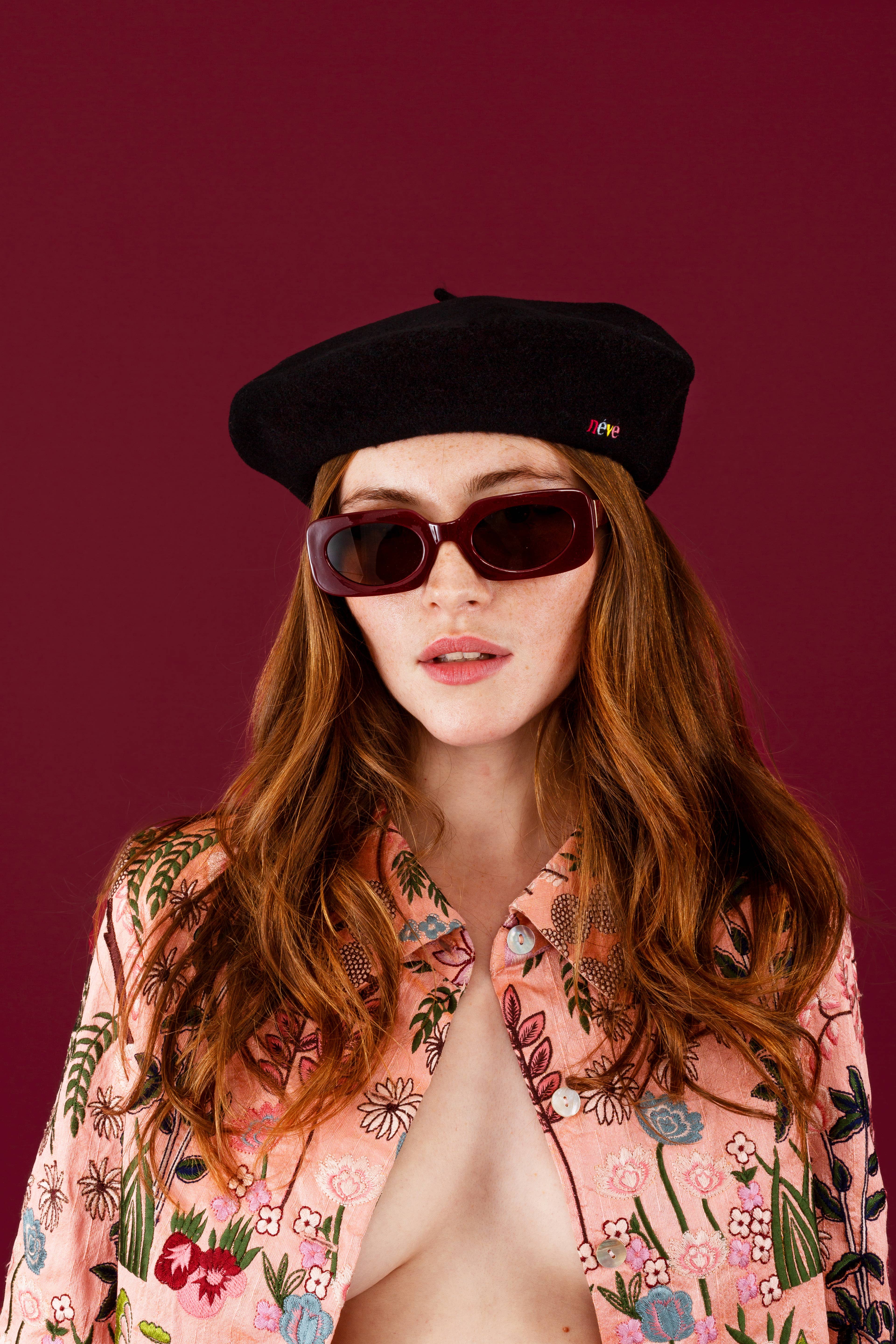 Baskenmütze mit Schlaufe an der Oberseite - MASSE: 11 ZOLL D -MATERIAL: 100% KASCHMIR