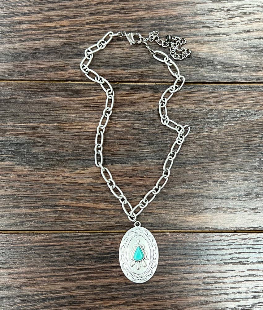 15 Zoll lange, winzige 4 mm lange Navajo-Perlenkette aus Silber, Anhänger in Concho-Türkis aus Messing * Naturstein kann in Größe, Farbe oder Form variieren * 15 Zoll lange Halskette und 5 Zoll Verlängerung * 4 mm Navajo-Perlenkette * 0,8-Zoll-Anhänger aus Messing, antike Silberplatte * 12 Gramm Gewicht * Nickel-, Blei- und Chromfrei