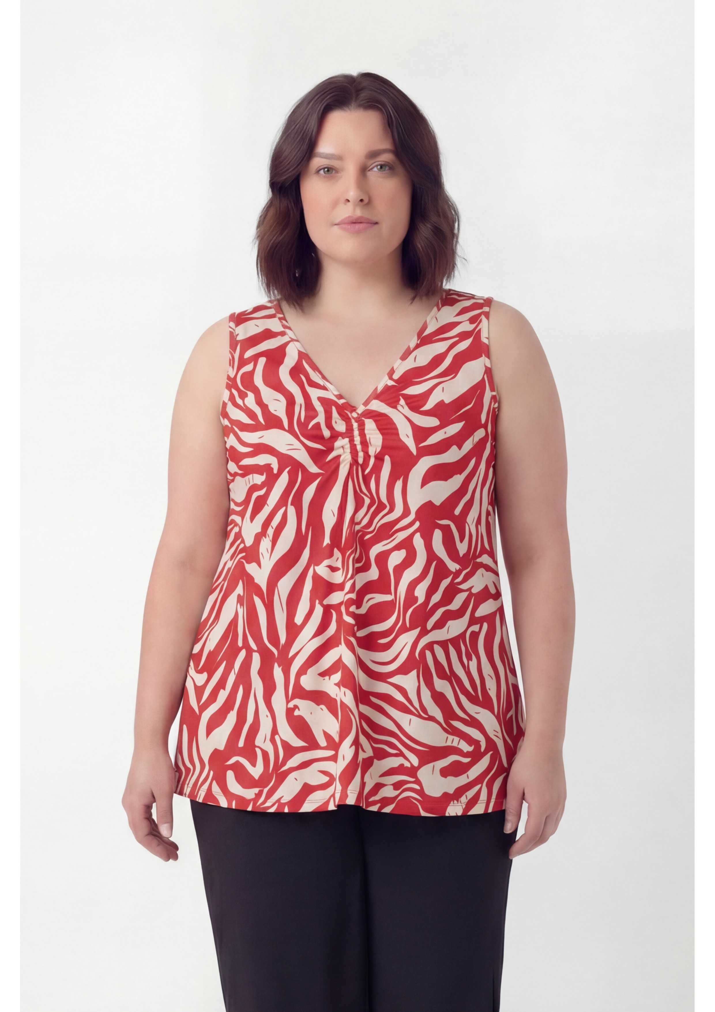 ÄRMELLOSES TANKTOP MIT FALTEN UND BLUMENMUSTER IN ÜBERGRÖSSE - 100% Polyester IM GROSSHANDEL