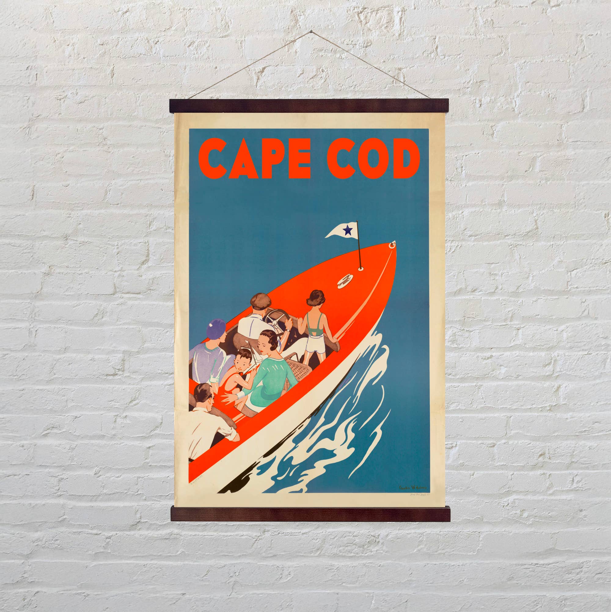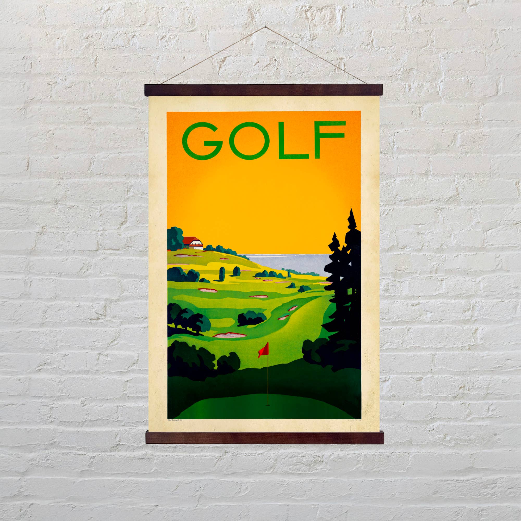 Misst 30" x 20" ohne Schnur. Jedes Teil wird mit einem angebrachten Holzrahmen oben und unten versandfertig geliefert. Jedes Teil ist in einer individuellen Einzelhandelsverpackung verpackt, um zusätzlichen Bestand auf dem Boden oder im Lager zu haben. Gedruckt auf schwerem, reißfestem Material. Kunden lieben die Haltbarkeit.