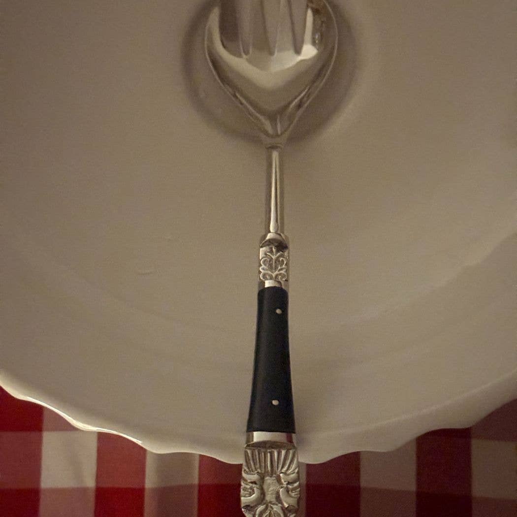 2-teiliges Salatbesteck aus Edelstahl mit Schachbrettgriff