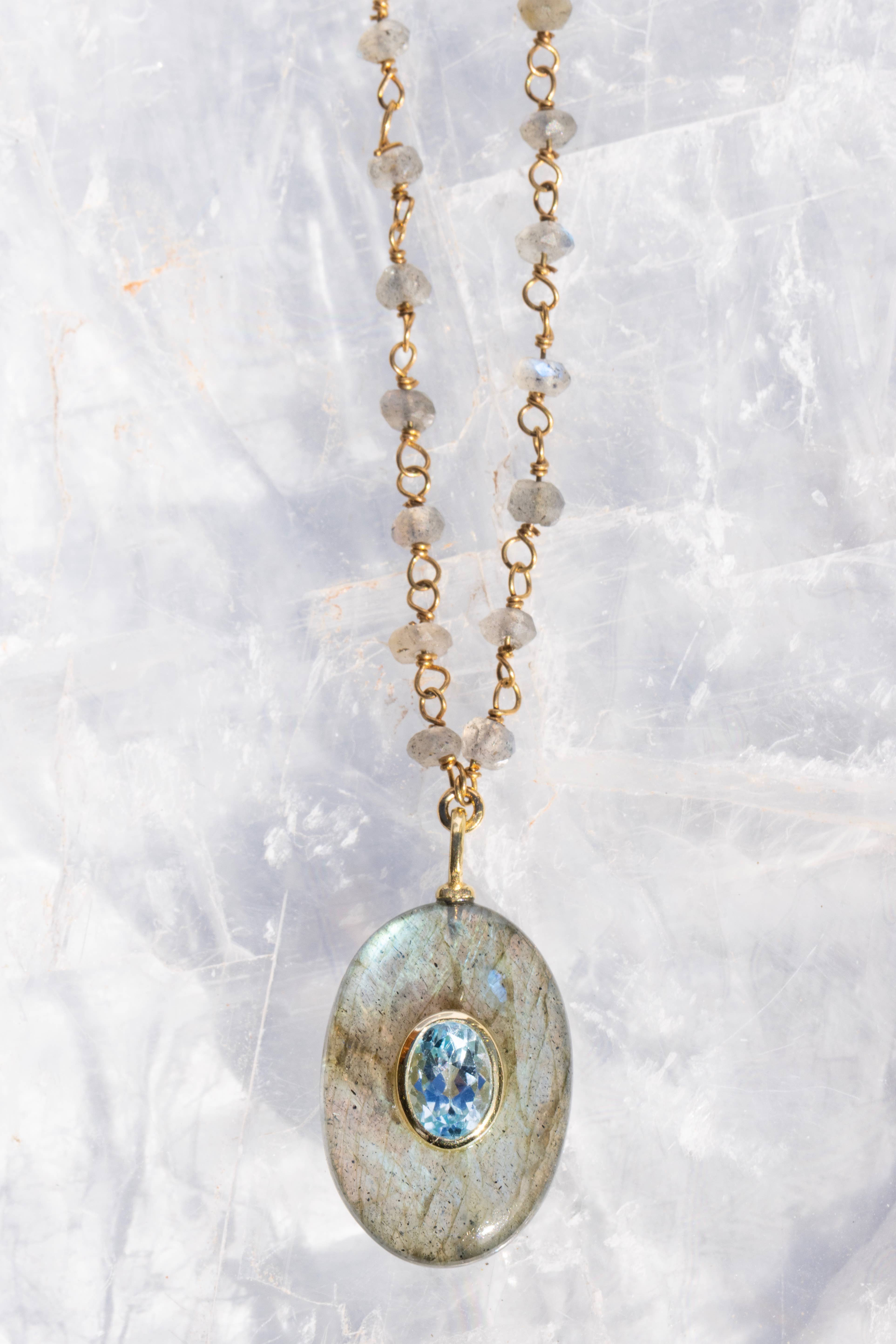 ELYSISCHE HALSKETTE — AQUAMARIN — 14-KARÄTIGE GOLDFÜLLUNG
