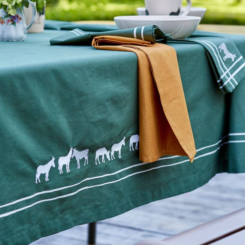 Dieses von der Provence inspirierte Muster erstrahlt in reichen, von Wiesen inspirierten Farben und schmückt unser französisches Tischtuch mit einer reizvollen und lebendigen Darstellung. Ob für besondere Anlässe oder den täglichen Gebrauch, es deckt den perfekten Tisch. Unser französisches Leinen, erhältlich in quadratischen und rechteckigen Formen, wurde von erfahrenen Kunsthandwerkern mit einer altbewährten Technik sorgfältig von Hand bedruckt, was zu einem einzigartigen Kunstwerk führt. Erhältlich in 6 Größen von Tischdecken Zeigt ein Muster, inspiriert von der üppigen Pracht Südfrankreichs Exklusiv für Couleur Nature vom Pariser Künstler Bruno Lamy entworfen Pflegeleicht und für den täglichen Gebrauch geeignet 100% Baumwolle; maschinenwaschbar und farbecht Seit 1997 - Handblockdruck in unserem Atelier in Jaipur, von fair bezahlten Kunsthandwerkern Alle unsere handgefertigten französischen Leinen weisen natürlich leichte Variationen auf, die jedes Stück subtil einzigartig machen